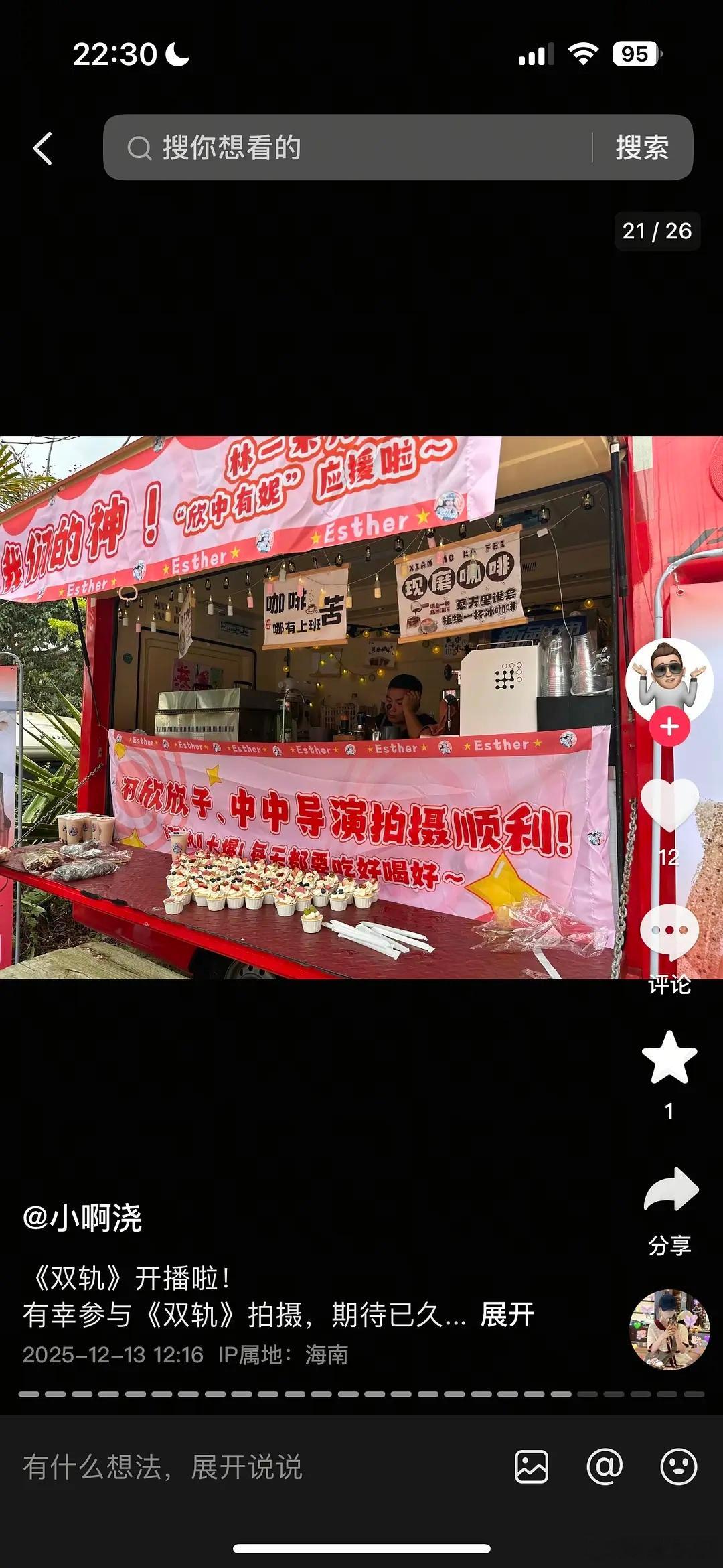 才知道林一给虞书欣《双轨》剧组请过奶茶,还用了咖啡车应援!有奶茶和蛋糕