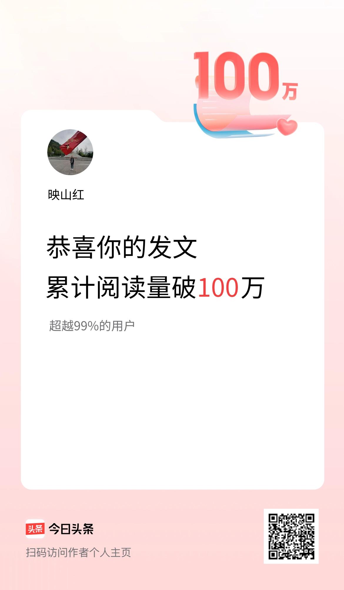 🤝我在头条累计获得阅读量破100万啦!