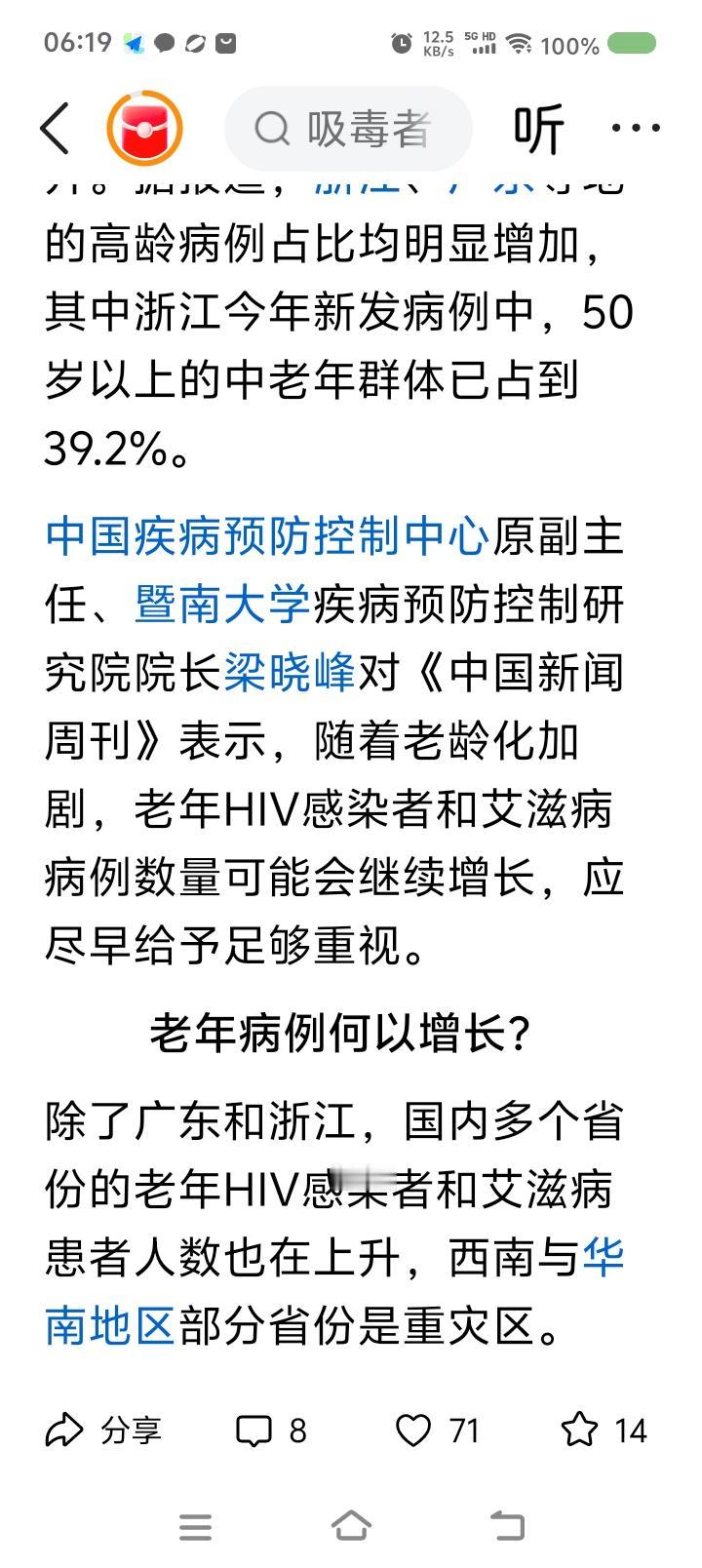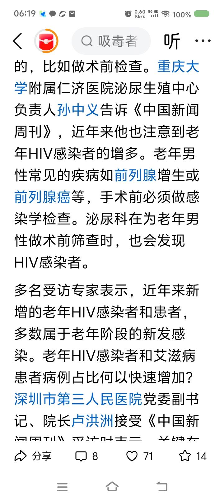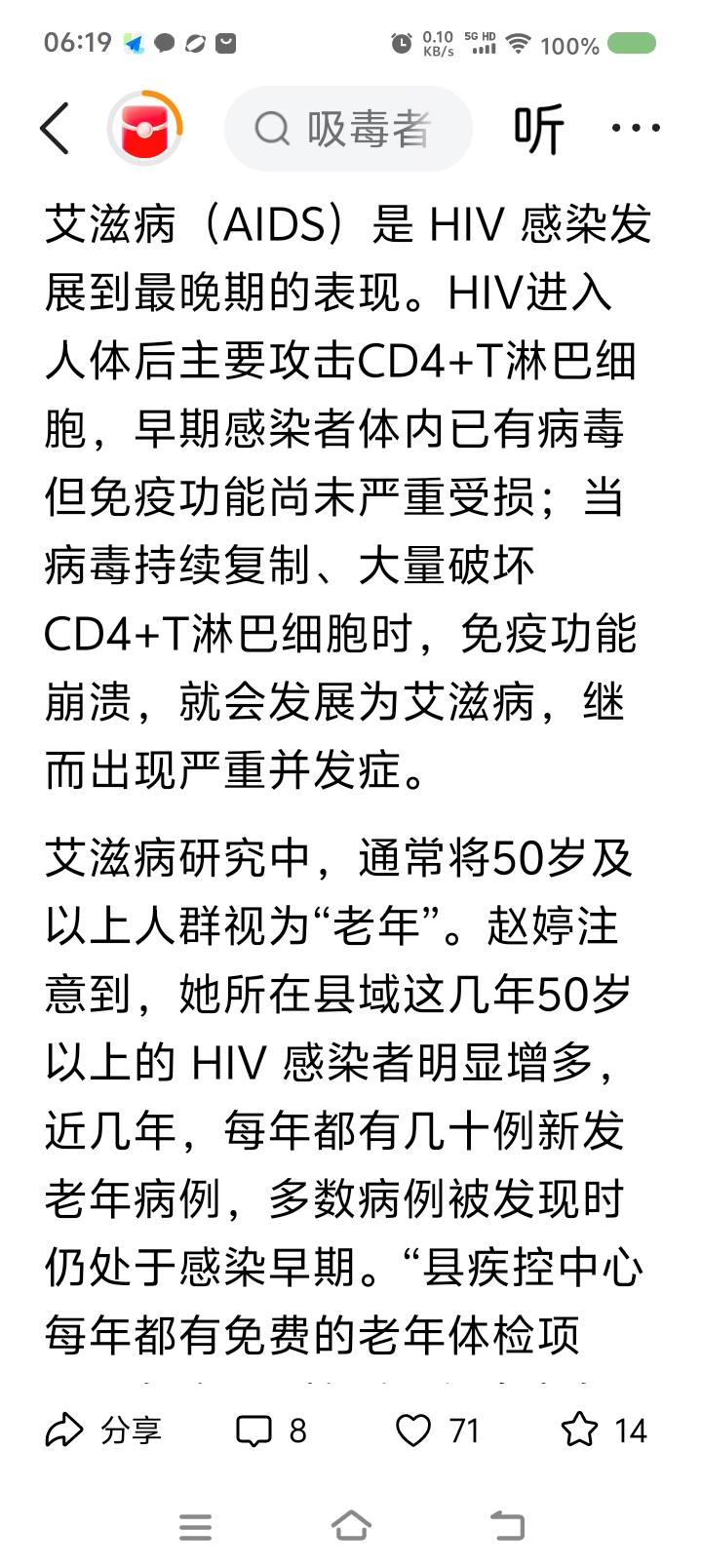 老年艾滋病感染人数持续上升! 你说为什么。 看下面的文章。 健康第一,身心健康最重要。不要有不良习惯。