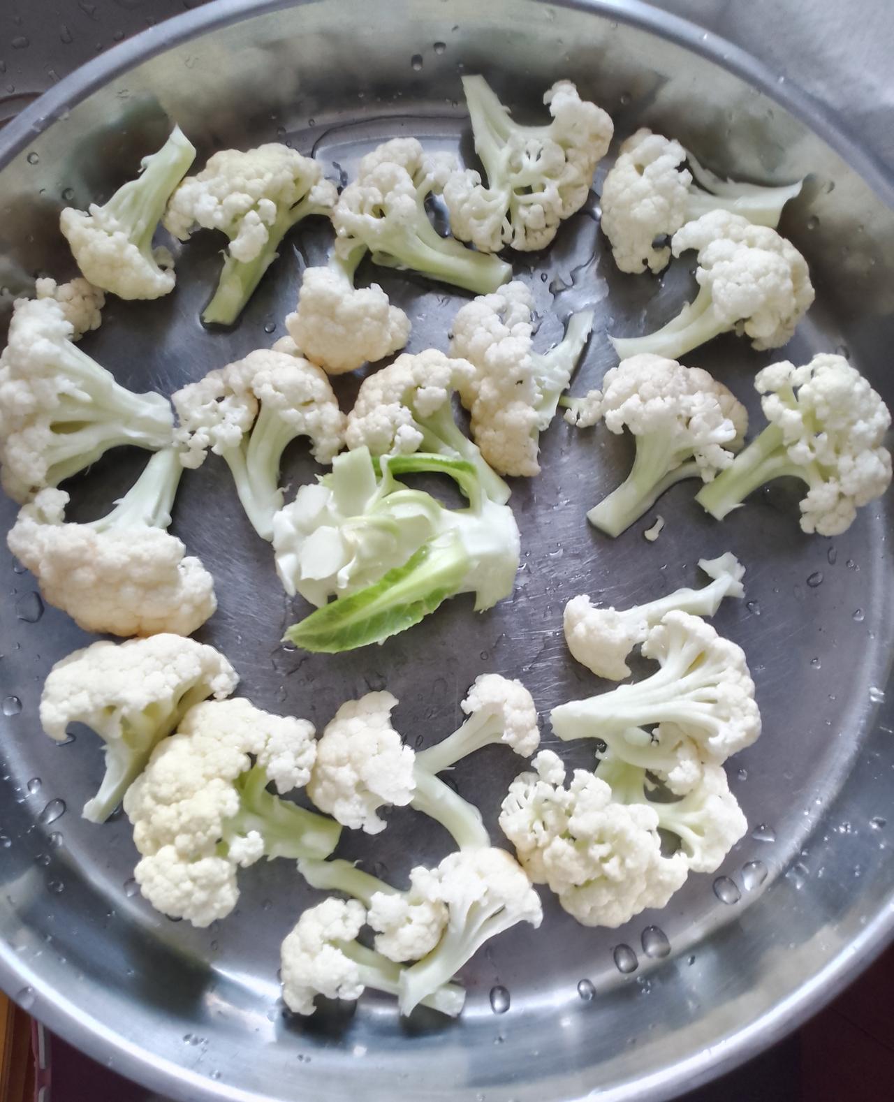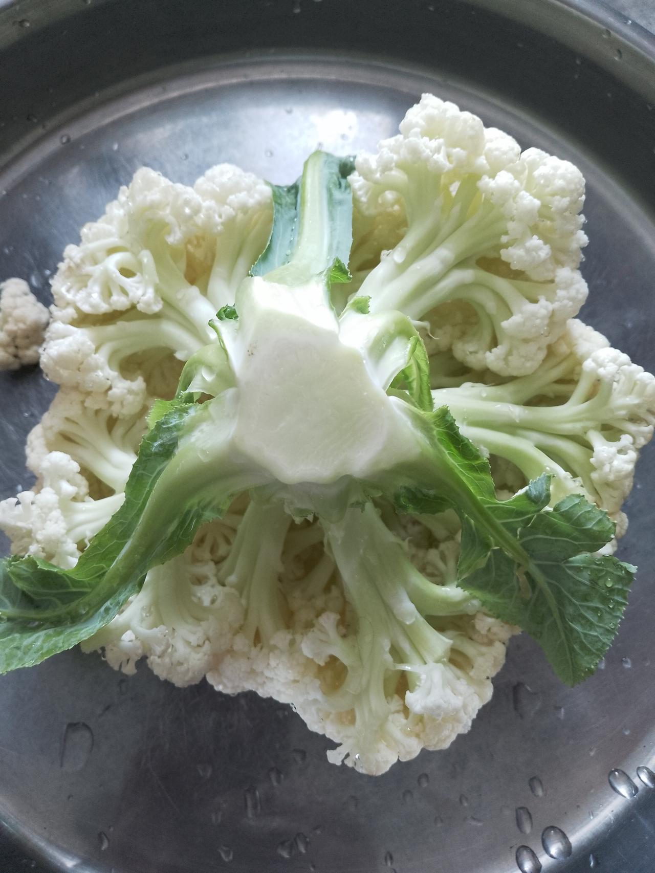 今天说一说广州的本地菜花和台山大菜花,以前我喜欢买本地人种的白色菜花,因为煮熟是淋的,后来市场有台山大菜花,这种大菜花是要炒的,最好用腊肉炒,口感是爽的,曾经有一段时间发现本地人种的菜花生虫了,就没有人种了,最近又看到这个本地人种的菜花,我首先反转来看看有没有小虫子,没有见到小虫子就买了一个,我还买了叉烧,煮熟菜花后才放叉烧炒一下。