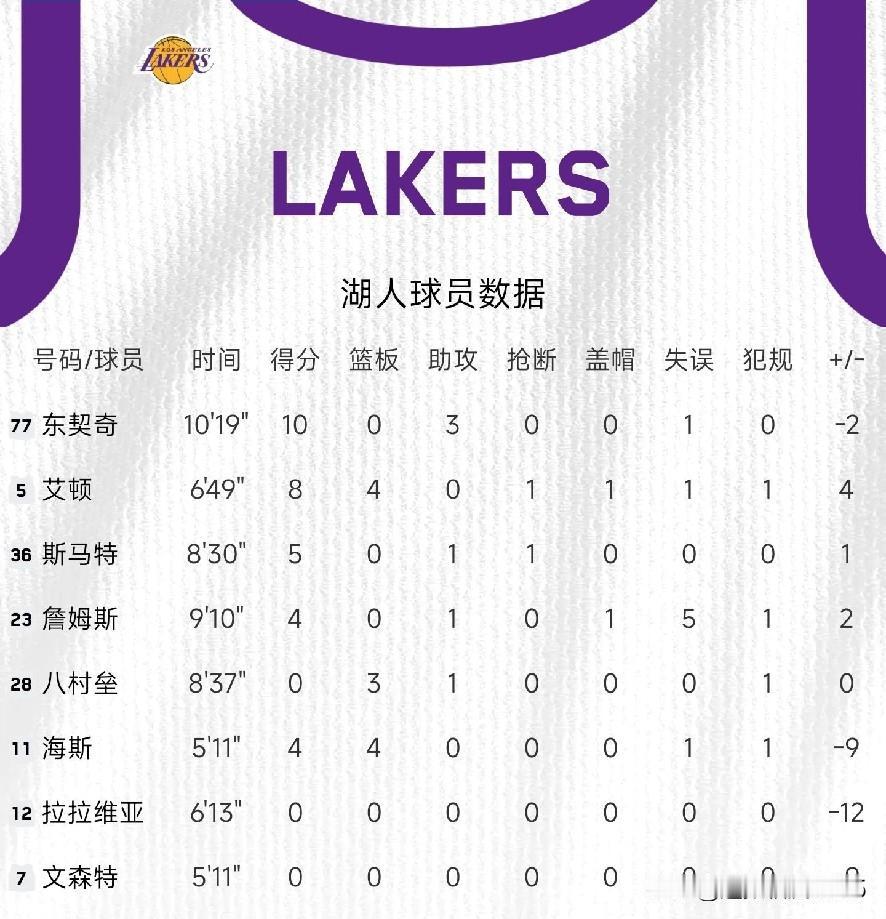 够不够一目了然?湖人7连胜