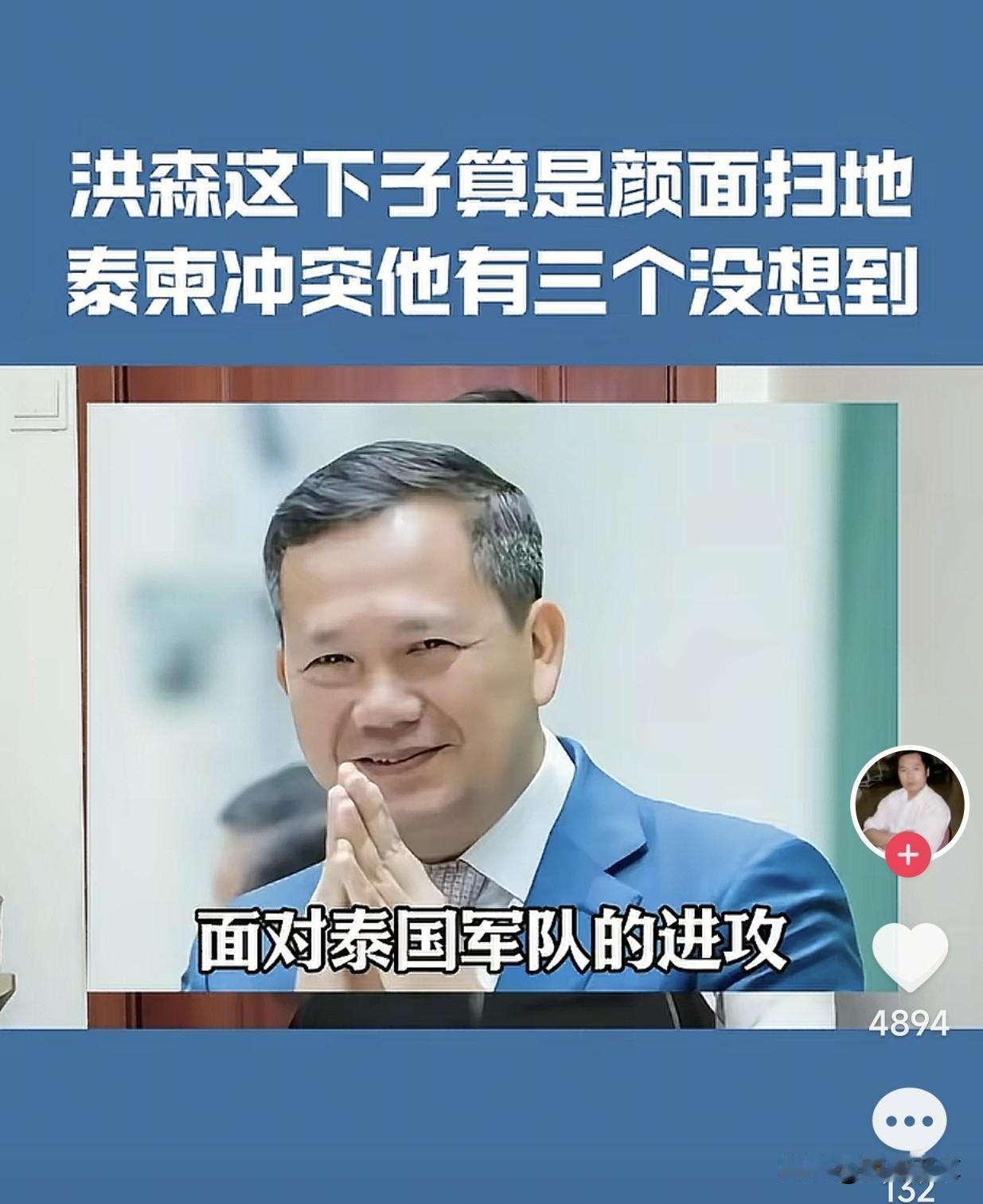 泰柬冲突发展到现在,洪森应该已经能意识到,事情跟自己想的不一样,他至少有3个没想到:第一、他没想到泰国人连特朗普的面子都不给。第二、泰国这次似乎认真了,攻击力度很大,连战机和舰艇都出动了。第三、国际社会上对泰国并无谴责的声音,就连大国这次也能罕见的沉默了!事到如今,洪森应该知道自己闯祸了!