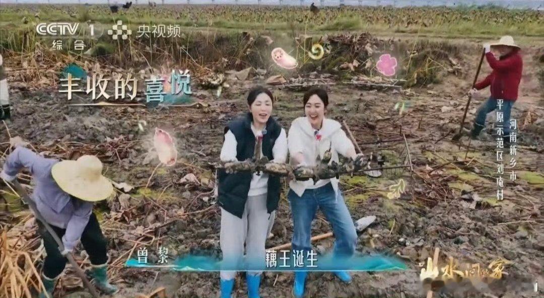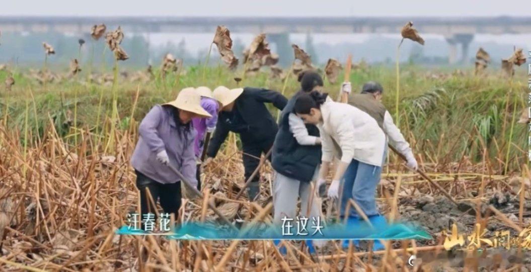 曾黎挖出了一米长完整的藕《山水间的家》的田间藏着小惊喜!曾黎和伙伴埋头挖藕,意外挖出一根一米长的完整莲藕。她举着藕兴奋喊出“从头到尾都完整”,眼里满是雀跃,泥土气息混着爽朗笑声,这份劳作的快乐,让人忍不住跟着开心。
