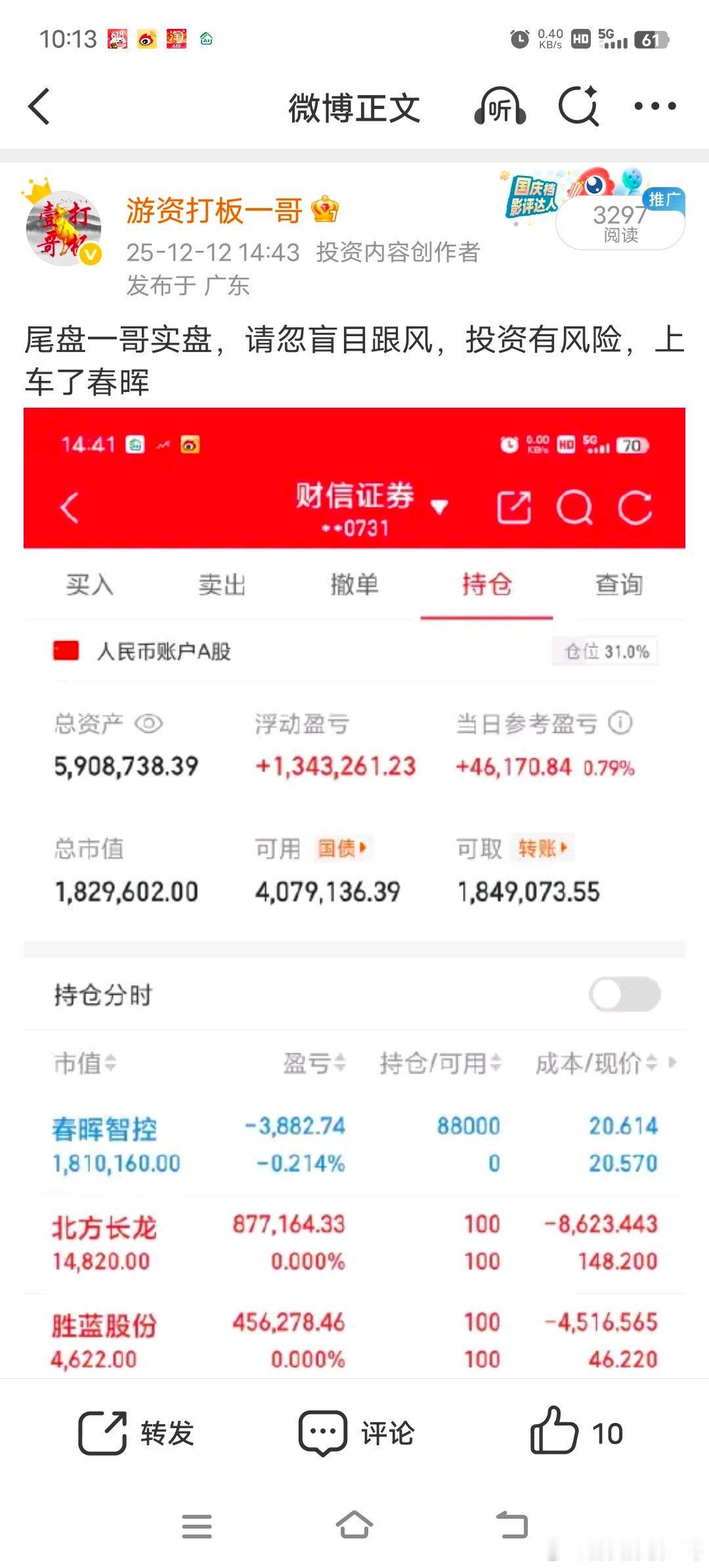 尾盘一哥实盘,请忽盲目跟风,投资有风险,上周五上车的春晖减仓,新上车陕西