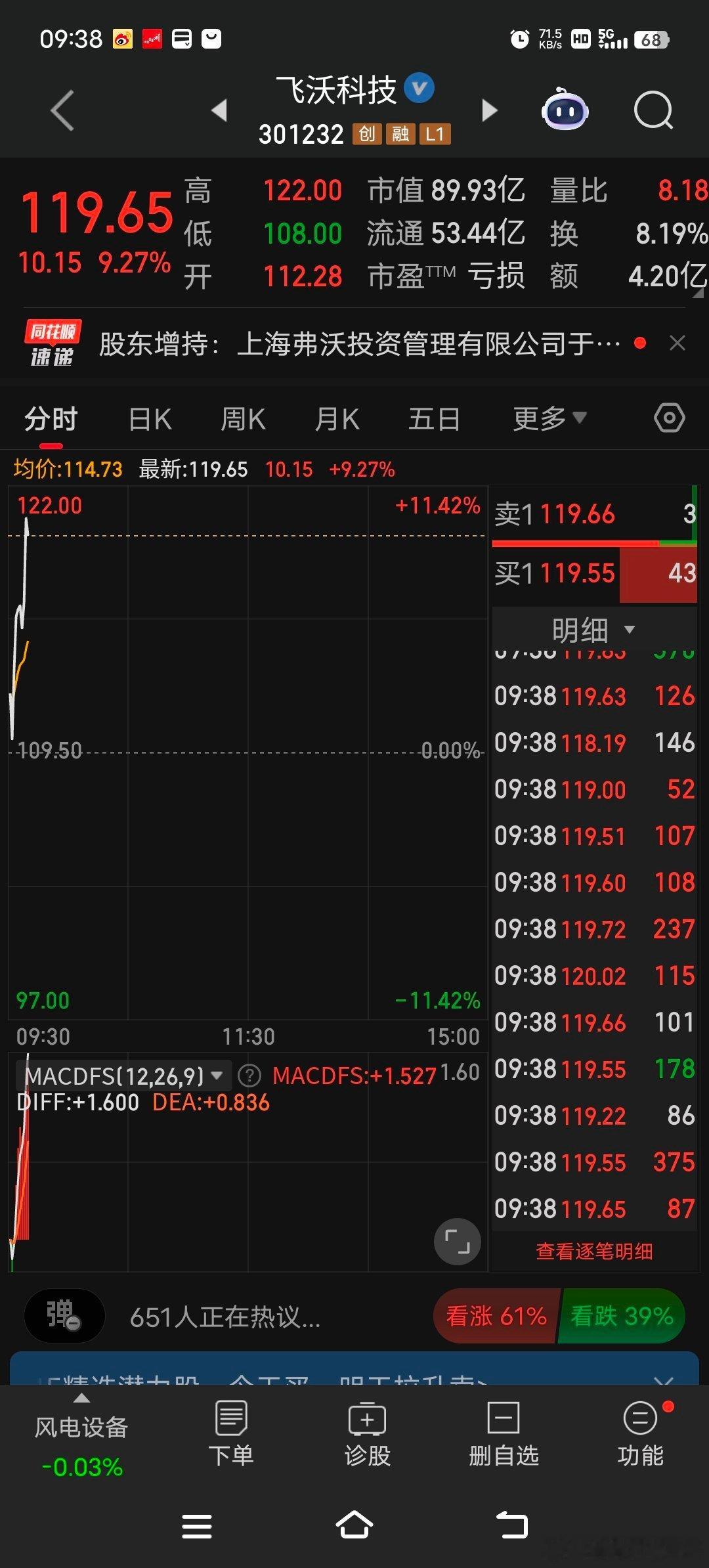 看看我们圈内牛飞沃科技继续走高大涨9%