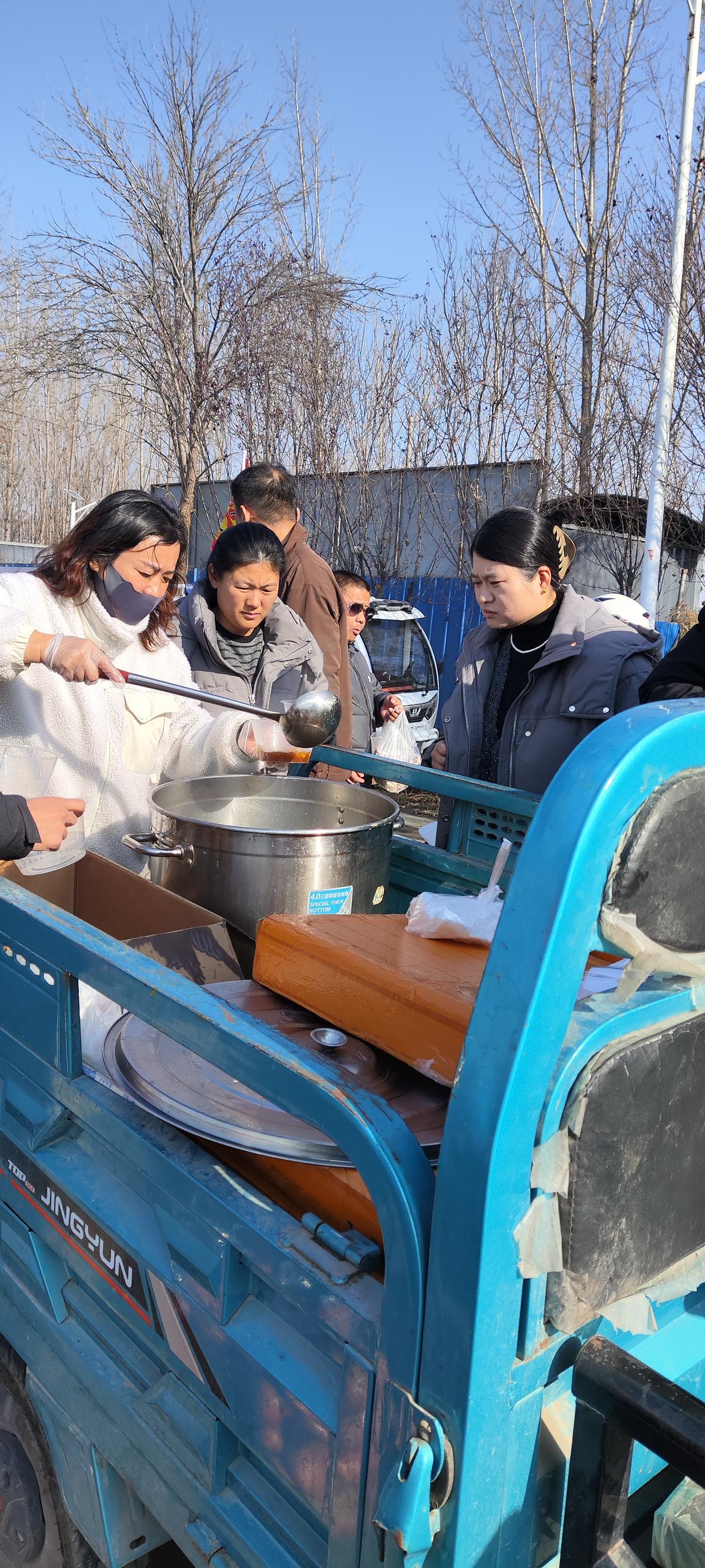 山东淄博湖田大集,村里给摆摊商户准备的炖菜馒头,两个馒头一份菜一块钱,上前询问,