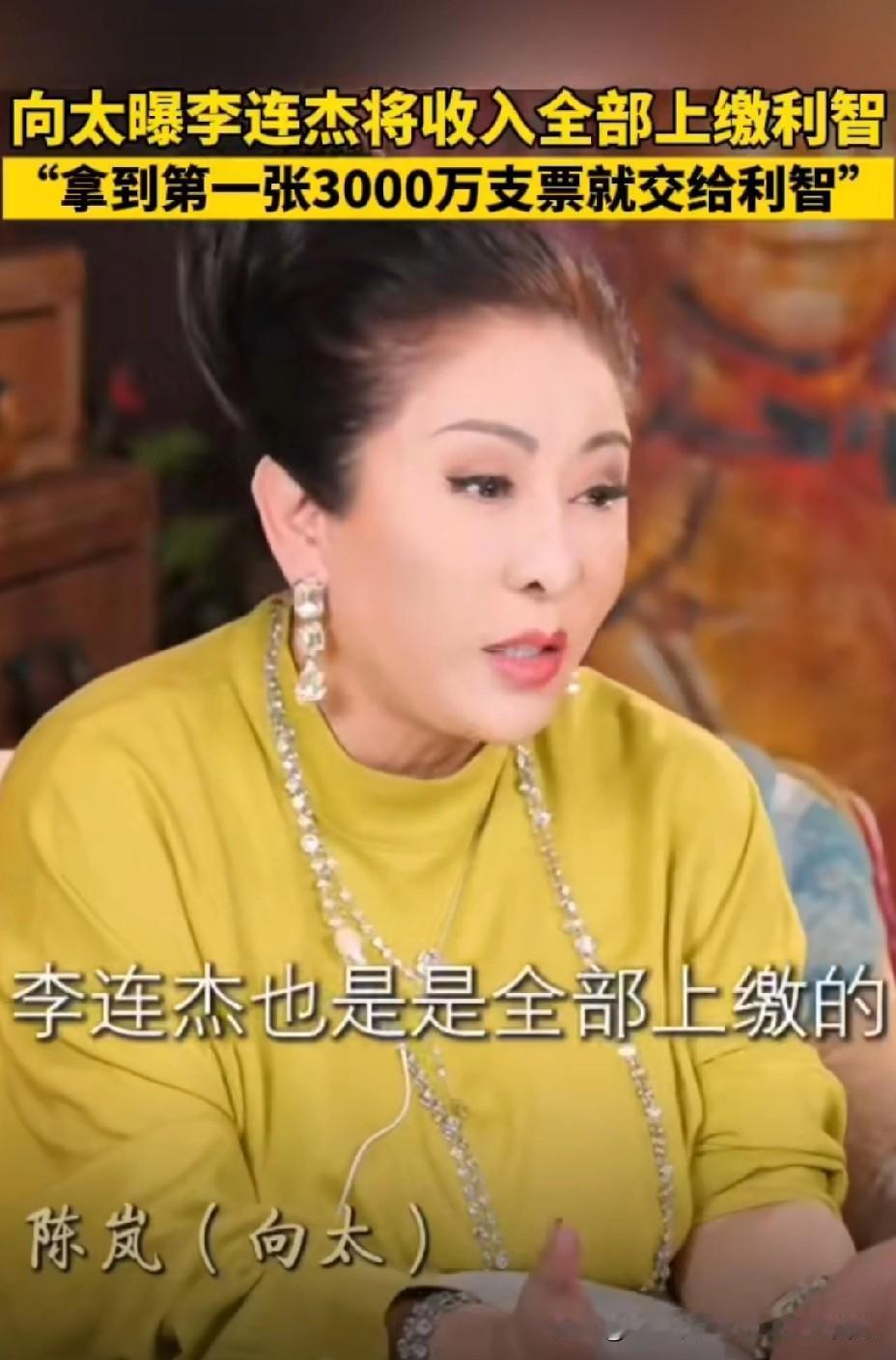 最近向太接受采访时谈到夫妻间如何管理金钱, 举例李连杰的收入是全部上缴给利智的, 这样李连杰身上就没有一分钱了, 因此李连杰才没有变坏, 这是不是变相的在支持男人有钱就变坏这个观点呢? 但是对于向太所说有个疑问, 要是李连杰把钱都给了利智, 他是怎样买的那颗贵得离谱的天珠的, 一般来讲这种没啥用处的东西老婆不会给老公买, 而且还是在老婆管钱的情况下。