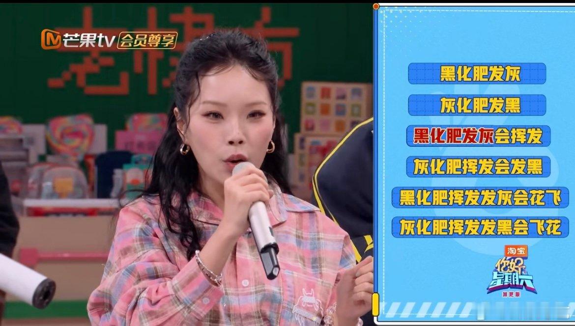 万妮达说绕口令堪比打字机 谁懂这种惊艳感!《你好星期六》绕口令挑战,她打字机式输出 “黑化肥会发灰”,口齿清晰一遍通关超圈粉~你好星期六