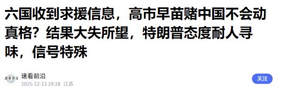 六国收到求援信息,高市赌中国不敢动真格,结果大失所望 这场风波的导火索,是 11 月 7 日国会答辩席上那句出格的话。当时面对议员质询,高市早苗直接抛开内阁准备的 “安全牌” 稿子,临场发挥宣称 “如果中国大陆对台湾动武,可能构成日本存亡危机事态,自卫队能行使集体自卫权”。 这话可不是随口闲聊,在日本法律里,“存亡危机事态” 意味着自卫队能直接动武,等于把干涉台海的野心摆上了台面。要知道,日本当年殖民台湾半个世纪,战后国际法早把台湾归还给中国,如今跳出来说 “台湾有事就是日本有事”,纯属开历史倒车。 高市敢说这种话,算盘打得噼里啪啦响。她料定中国重视中日关系,不会真下狠手;更觉得有美国和 G7 盟友撑腰,就算惹恼中国,也能靠 “朋友圈” 撑场面。可她忘了,中国的核心利益从来不是用来讨价还价的。 外交部当天就炸了锅,直言这 “违反战后国际秩序,砸了中日关系的根基”,紧接着国防部更放出狠话:“重走军国主义邪路必将万劫不复”。 日方起初还想狡辩,外务省急着撇清 “只是假设情况”,但这话连日本国内都骗不过。《世界》杂志前总编直接戳穿:“真正的对话得从尊重对方开始,高市这态度根本没法谈”。 眼看嘴硬没用,高市开始搞小动作:派 F-15J 战机抵近侦察辽宁舰,炒作所谓 “雷达照射” 事件,试图把自己扮成 “受害者”,为求援找借口。可中方早把话说透了:演习区域提前通报,完全符合国际惯例,日方碰瓷纯属自导自演。 碰钉子后,高市终于慌了,12 月 10 日在众议院预算委员会上急着亮 “底牌”—— 宣布已向美国、英国、法国等六国求援,还说愿意飞华盛顿见特朗普求支持。这波操作看似强硬,实则暴露了心虚:要是真有底气,何必急着找外人撑腰? 可盟友的反应,给了她结结实实一盆冷水。德国、法国先就说了,坚决奉行一个中国政策,绝不可能为日本得罪中国。毕竟这些国家跟中国贸易往来密切,谁也不想丢了饭碗。 美国的态度更耐人寻味,半个多月才敷衍回应,只提 “雷达照射”,对高市的涉台言论半个字不提,所谓 “防卫承诺” 不过是走个过场。 英国《金融时报》爆料,日本驻美大使跑断腿都没换来一句明确支持,美方心里门儿清:为日本跟中国撕破脸,太不划算。 六国集体冷遇的同时,中方的反制已经落地生根。商务部直接亮出杀招:给日本半导体材料、汽车零部件加了一两倍的惩罚性关税,稀土供应砍到去年的十分之一,镓、锗这些关键材料干脆停供。 要知道日本对这些资源的依存度超过 85%。效果立竿见影,11 月日本对华出口暴跌 18%,丰田、索尼的扩产计划全停了,一万多家在华日企融资成本飙升。 民生领域更惨,中方发了赴日旅游高风险提示,49 万张机票退订,日系车在华销量直接腰斩。日本民众比政客清醒多了,稀土一受限,支持率立马掉了 6 个百分点。社交媒体上,大家盯着辽宁舰的动态刷新,生怕局势升级 —— 这种恐惧,比任何警告都管用。 现在再看高市早苗,当初的嚣张劲儿早没了。共同社曝出来,她那句惹祸的话根本不是政府决策,就是个人临场发挥,说白了就是为了博右翼支持赌一把。 可赌局从来不由她定规矩:中国敢动真格,盟友靠不住,经济扛不住,国内怨声载道,这哪是 “存亡危机事态”,分明是她自己制造的 “政治危机”。 有人说这是日本右翼的 “试探”,但这种试探无疑是玩火。台湾是中国的核心利益,就像一根碰不得的红线,之前美国航母在南海耀武扬威,摔了飞机还得灰溜溜回国,何况日本?高市以为中国会忍气吞声,殊不知现在的中国,既有说 “不” 的底气,更有出手的实力。 如今的日本,就像钻进了死胡同:撤回言论丢面子,不撤回挨重拳;求援没人理,硬扛扛不住。这也给那些想打台湾主意的势力提了个醒:中国从不是吓大的,任何触碰核心利益的冒险,到头来只会搬起石头砸自己的脚。高市早苗的这场赌局,输得彻底,也输得活该。