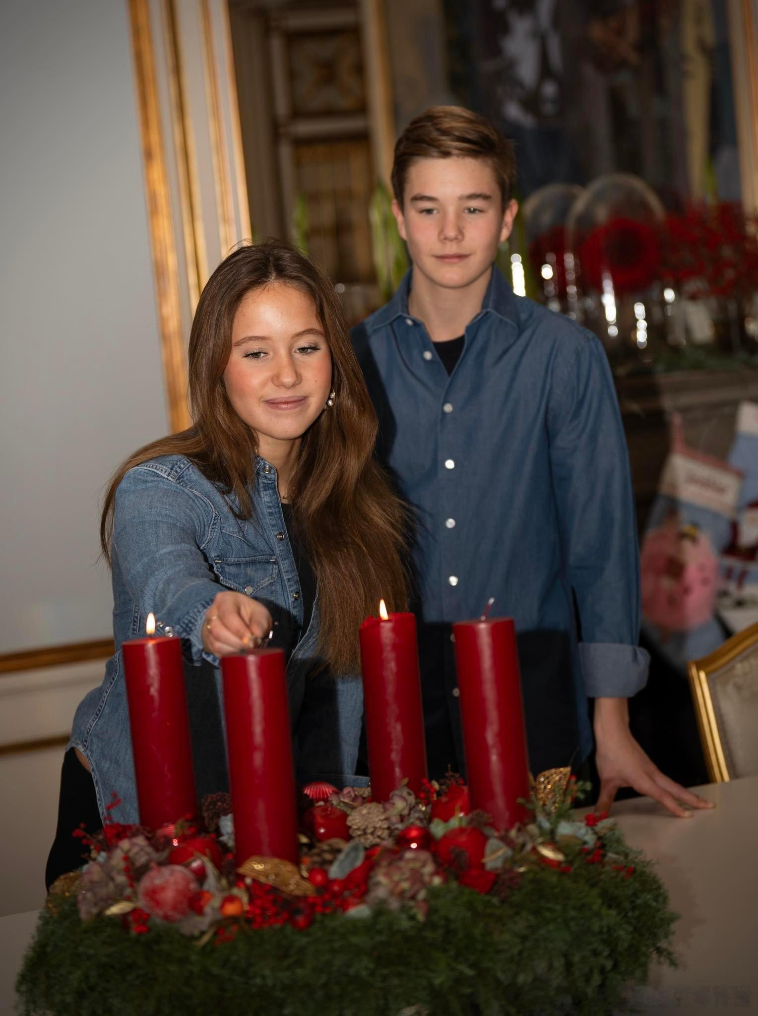 新闻 2025.12.14 丹麦王室分享文森特王子和约瑟芬公主点亮圣诞花环的照片,兄妹装好看。