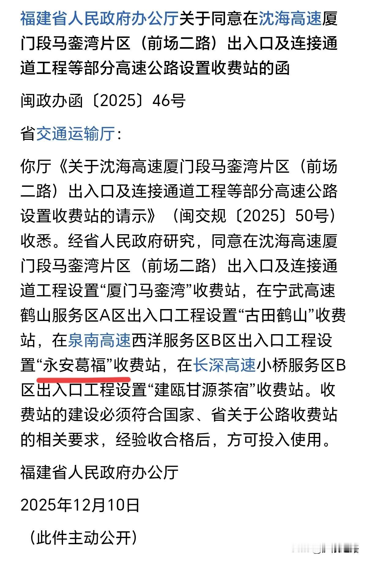 好消息!三明永安市又一个高速服务区出入口即将建成通车运营。 近日,永安市泉南高速西洋服务区B区将新增的简易出入口,正式命名为: 永安葛福。 目前,省政府已批复通过泉南高速西洋服务区B区出入口工程设置“永安葛福”收费站。