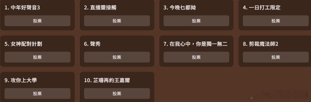 万千星辉颁奖典礼2025丨最佳资讯及专题节目、最佳综艺节目最后十强.最佳资讯及专题节目最后十强1. 東張西望2. 美食新聞報道3. 江湖見4. 香港系列之原味道5. Grand住去利物浦6. 真相請·情·尋7. 盲盒鐵路遊8. 空運世一9. 無窮之路V·智行無疆10. 帶阿姐看世界最佳综艺节目最后十强1. 中年好聲音32. 直播接龍騷3. 今晚七都拗4. 一日打工限定5. 女神配對計劃6. 聲秀7. 在我心中,你是獨一無二8. 剪裁魔法師29. 攻你上大學10. 芷珊再約王嘉爾TVB