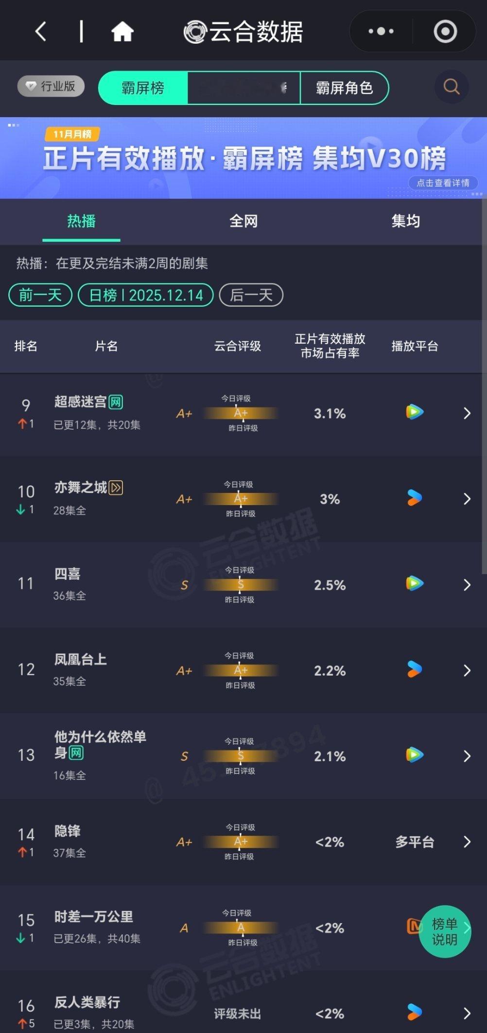 大盘1.7+狙击蝴蝶 13.3% 2200+长安二十四计 10.6% 1800+ 横盘,扑双轨 10.5% 1800+ 也第三天就横盘,下午热度比昨天同期低100+,扑,抬走反人类暴行 1.7% 血扑开局