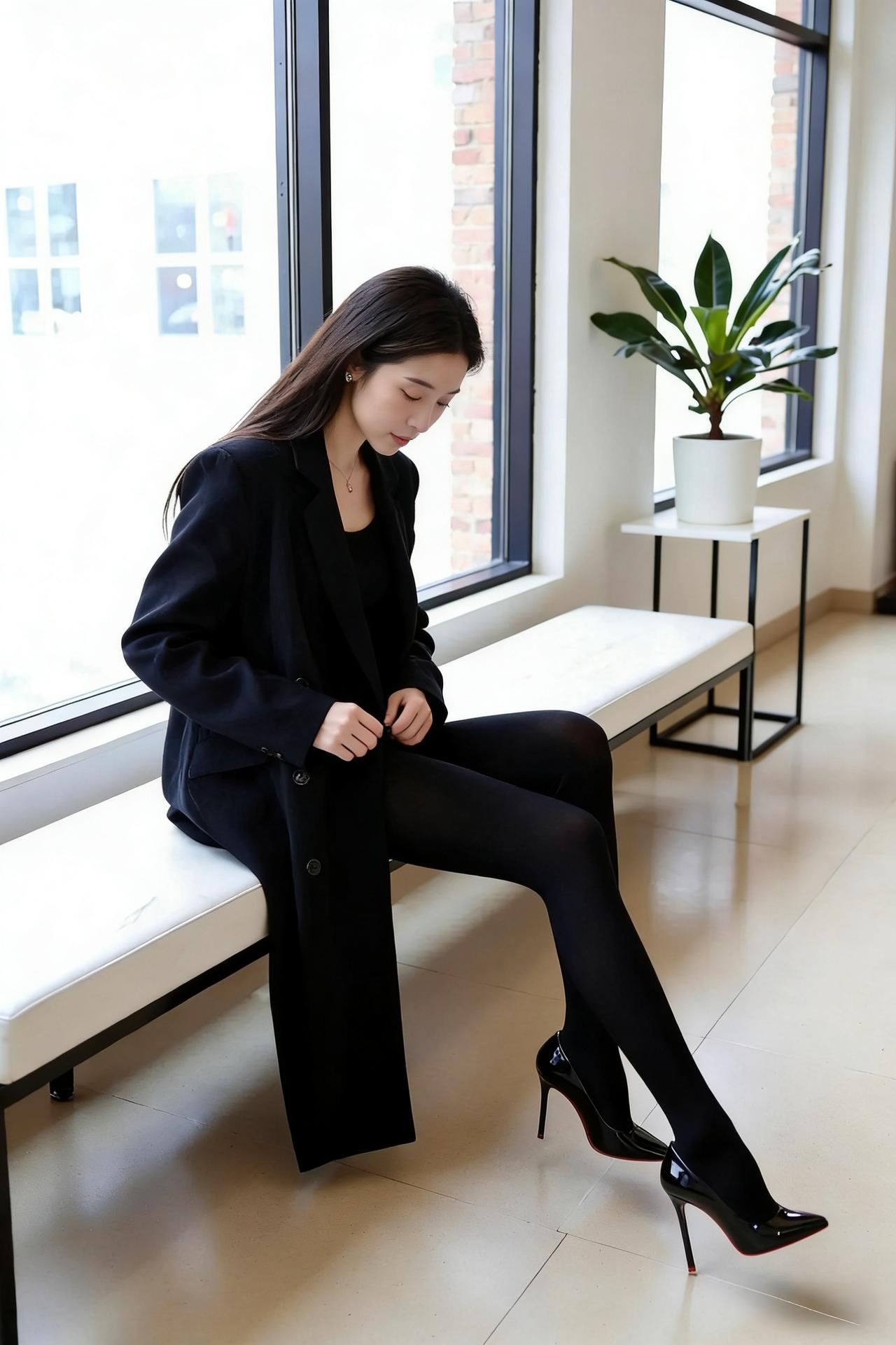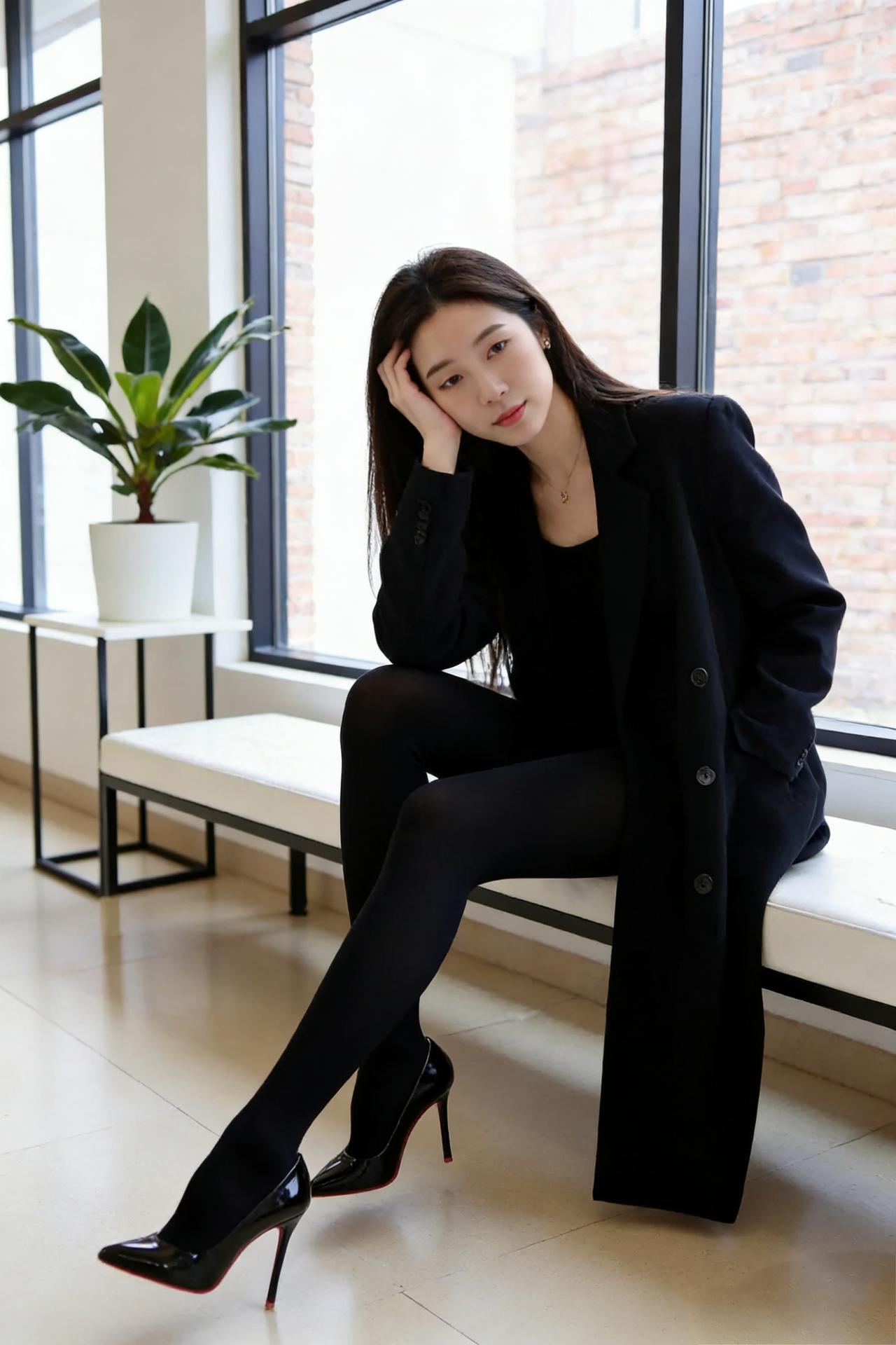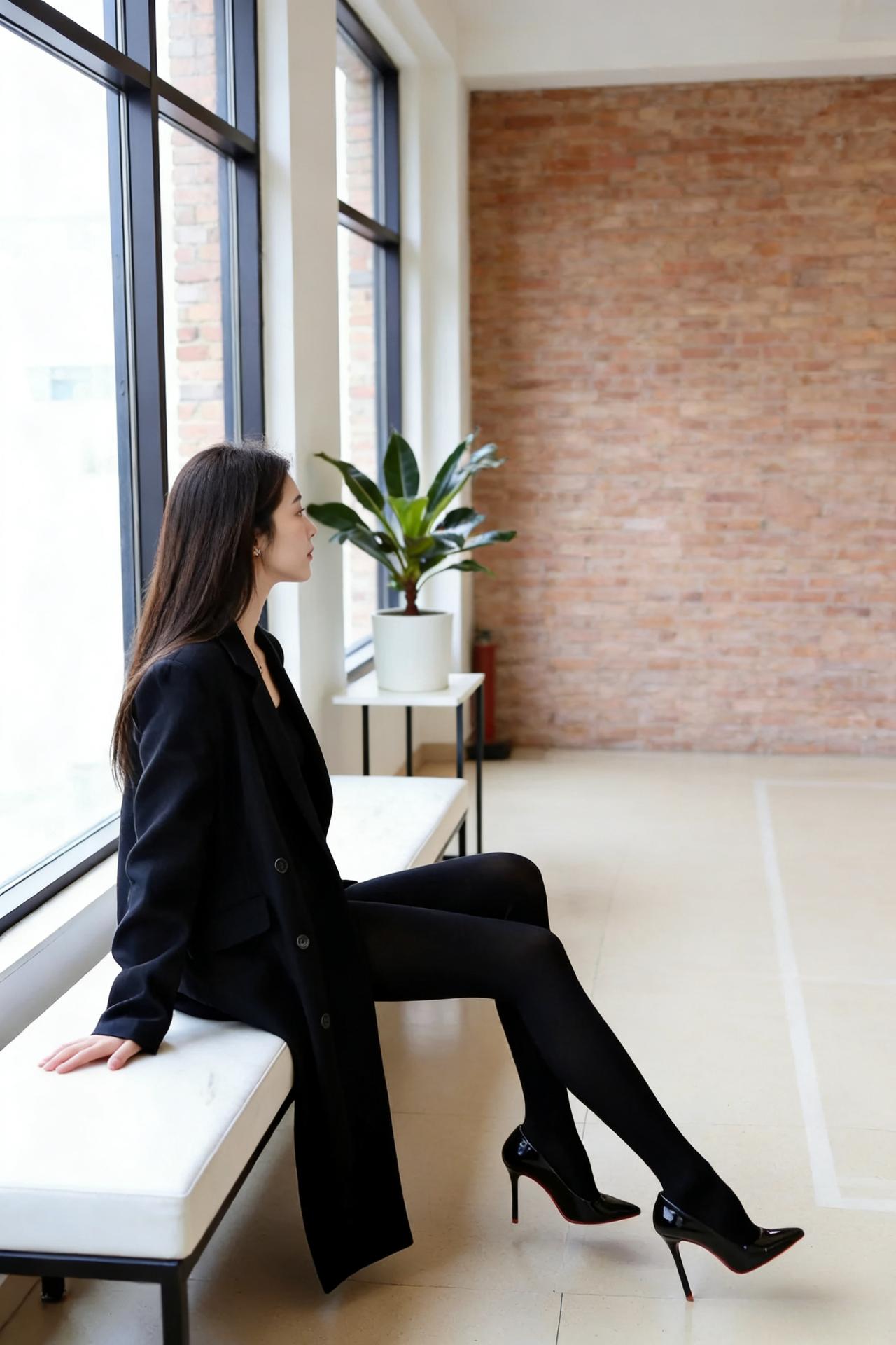 有哪些女生日常好看穿搭可以借鉴深灰色长款大衣,浅灰色厚裤袜,黑色皮鞋,既保暖又时