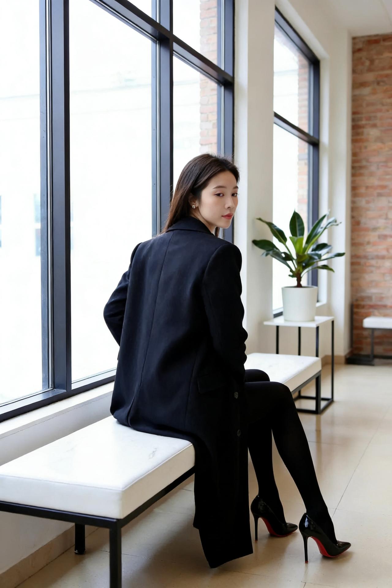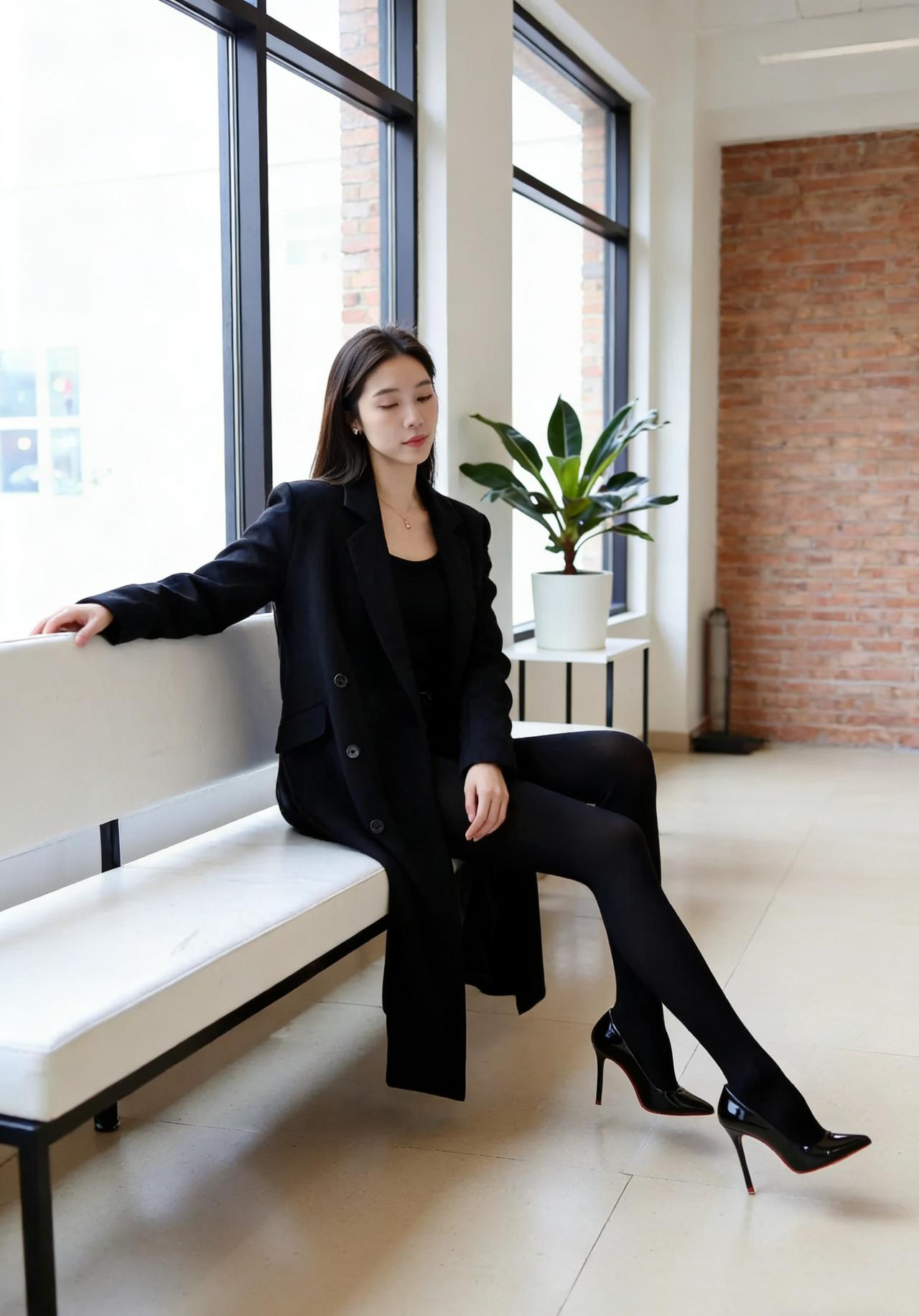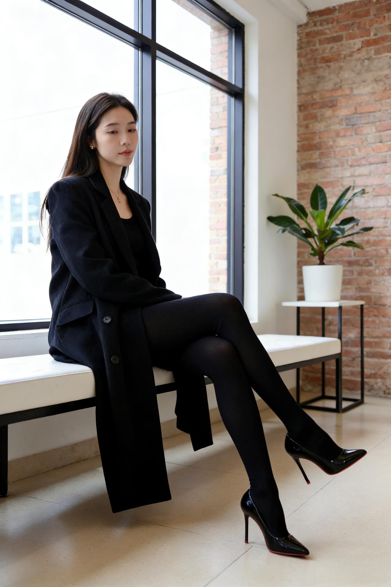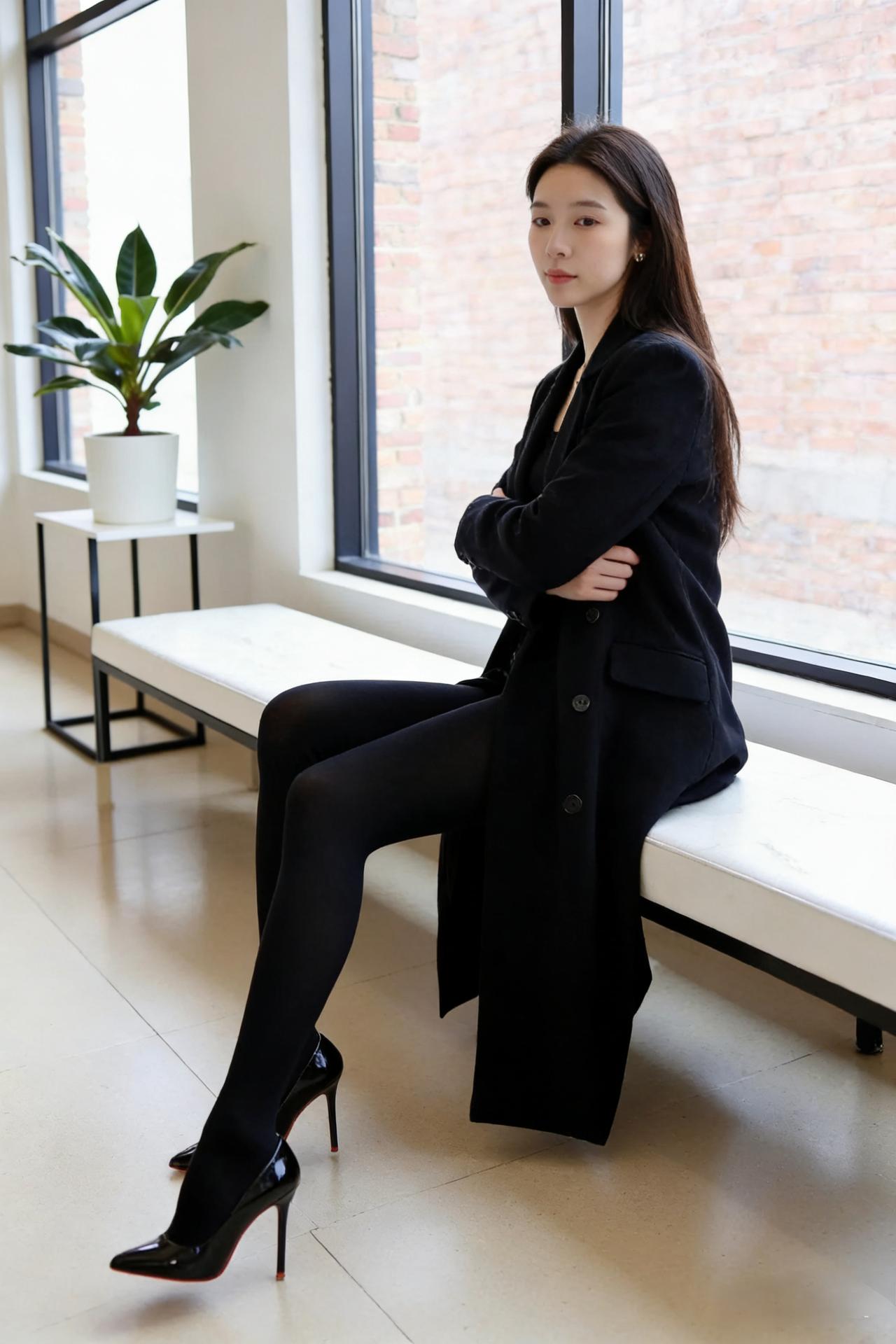 有哪些女生日常好看穿搭可以借鉴深灰色长款大衣,浅灰色厚裤袜,黑色皮鞋,既保暖又时