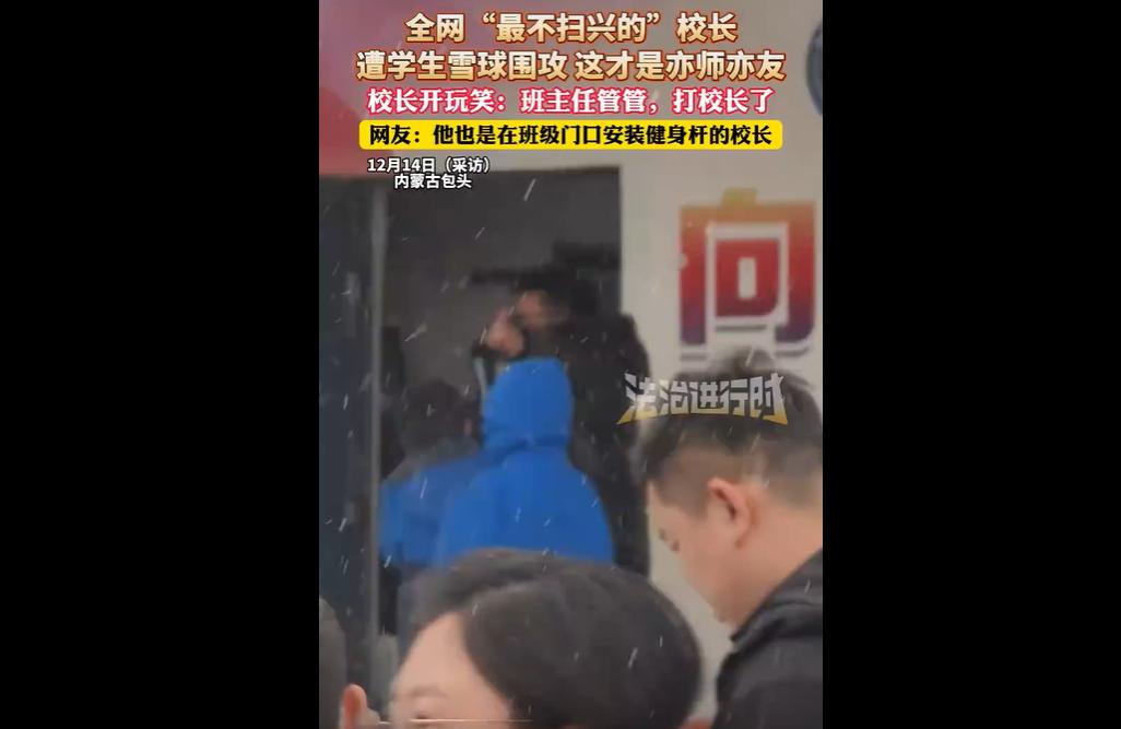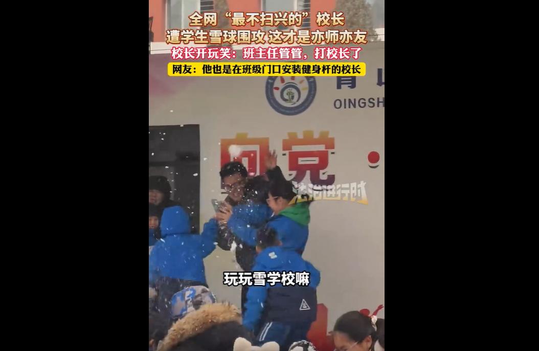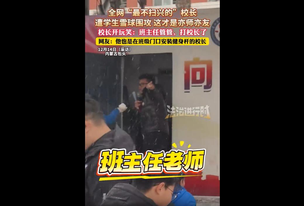 12月14日,内蒙古包头自由路第二小学德育副校长邵孝宇,雪后与学生嬉闹时遭雪球 “围攻”,他未制止反而边笑边躲闪,还幽默喊话班主任 “管管娃”。 该校长曾装健身杆,被赞 “最不扫兴校长”,网友称其守护童真,体现理想师生关系。 先夸邵校长的 “反套路”—— 没摆校长架子躲着学生,反而陪玩还幽默求助,这才是教育者该有的样子! 反观有些学校,雪天怕出事不让孩子踩雪,把 “安全” 变成 “束缚”,硬生生掐灭孩子的玩心,对比之下,邵校长的 “纵容” 才是真懂教育。 再看师生关系的 “真相”:学生敢扔雪球,是因为知道校长不会发火;校长敢求助,是信任班主任懂他的用心。 这种平等信任,比多少师德讲座都管用!现实里不少老师、校长跟学生隔着 “层级”,孩子见了就躲,哪来的亲近感? 更要提校园氛围的 “重要性”:安装健身杆、陪玩雪,这些小事藏着对孩子的尊重。 网友说 “信任比师德论文有力”,太对了!教育不是冷冰冰的规则,是让孩子敢笑、敢闹,觉得学校像 “第二个家”。 但也得戳个小痛点:这样的校长为啥成 “稀缺品”? 不少学校还在追求 “听话”“整齐”,忽视孩子天性。希望邵校长的做法能让更多教育者明白:守护童真,比追求成绩排名更能滋养孩子的成长!