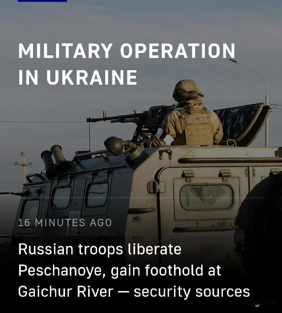 俄军解放佩沙诺耶村,在盖丘尔河沿岸建立阵地 12月15日, 塔斯社消息, 俄军方消息人士向塔斯社透露,俄军在解放第聂伯罗彼得罗夫斯克州佩沙诺耶村的行动中,于盖丘尔河西岸建立起登陆场。 消息人士称:“经过激烈作战,俄军已在盖丘尔河西岸建立登陆场,控制区域面积超3平方公里。” 消息人士补充道,在解放该村的过程中,东部集团军群第29集团军第36摩托化步兵旅官兵歼灭乌军第92独立突击旅两个多排兵力,摧毁敌军作战车辆7辆以上、“芭芭雅嘎”六旋翼无人机20余架。 消息人士指出,俄军在解放佩沙诺耶村期间渡过盖丘尔河,攻占了该村附近一处大型敌军防御据点。消息人士强调:“控制该区域将助力俄军扩大盖丘尔河西岸登陆场,并继续向第聂伯罗彼得罗夫斯克州纵深地带发起进攻。” 此前,俄罗斯武装力量总参谋长瓦列里·格拉西莫夫向俄罗斯总统、俄联邦武装力量最高统帅弗拉基米尔·普京汇报称,东部集团军群部队已在多处渡过盖丘尔河,正加大攻势,向第聂伯罗彼得罗夫斯克州南部及扎波罗热州东部推进。