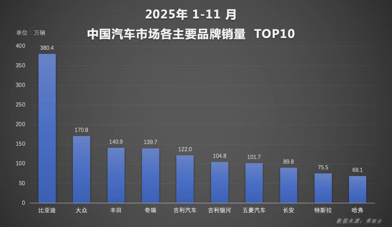 在年底车市冲刺中,凭借全球化、智能化与高端化的协同发力,比亚迪表现亮眼持续领跑。2025年11月,其单月销量突破48万辆,创下年内新高,前11个月累计销量已超418万辆,同比增长11.3%。