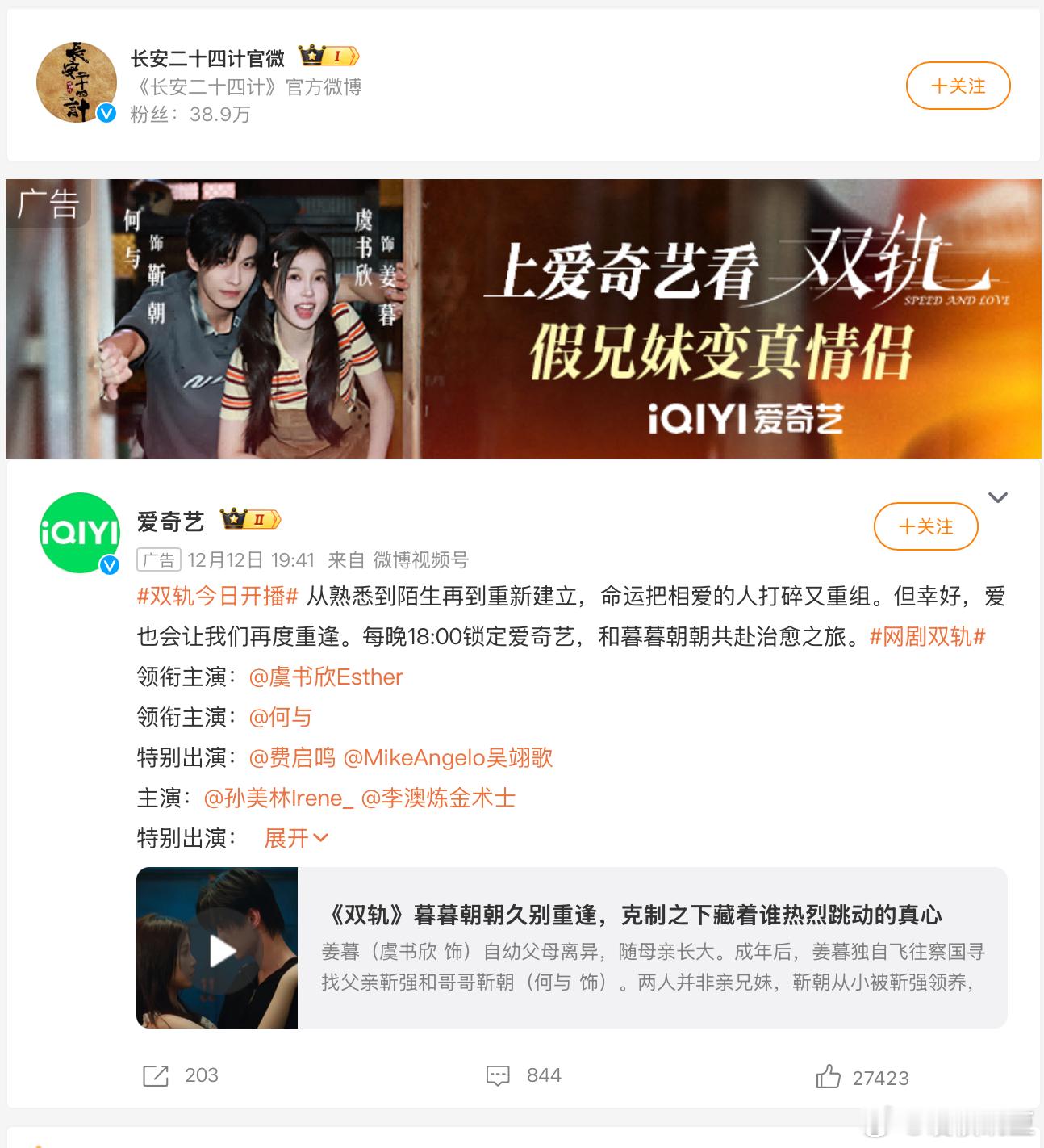 长安二十四计的词条下,为什么插播的是虞书欣新剧的广告,我还想,这个剧里没有虞书