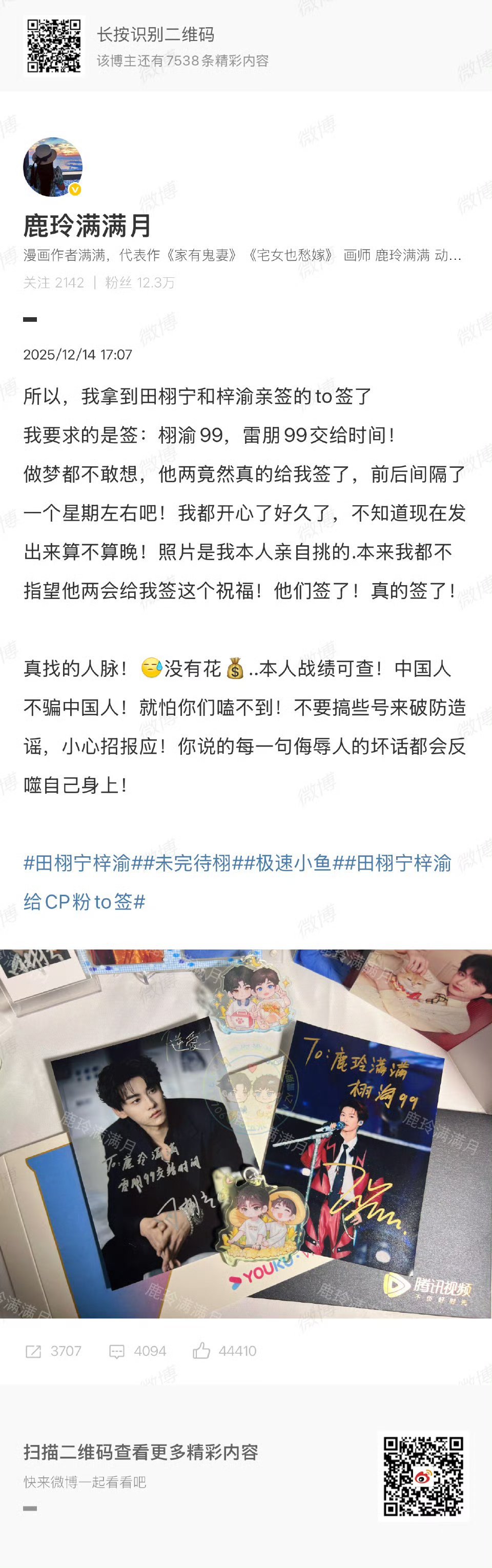 这是对接打假还是粉丝自己打假啊?如果靠人脉就可以拿到这种cp向的签名,对其他粉丝也…现在是wf希望是假的cpf希望是真的吧田栩宁方打假网传to签