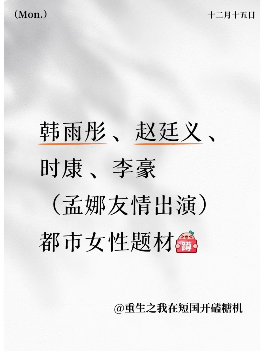 我们豹豹猫猫都要进组了辉子就是和李柯以搭的古装妞子就是之前说的那个女性题材的剧