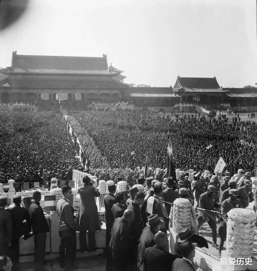 ▲1945年10月10日,中国华北战区受降仪式在故宫太和殿举行。图源:网络