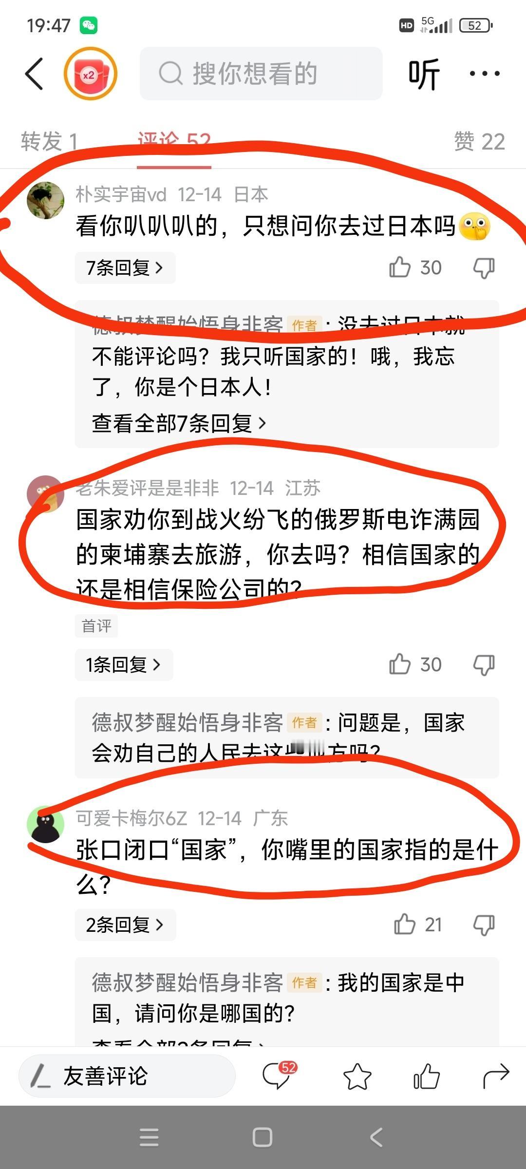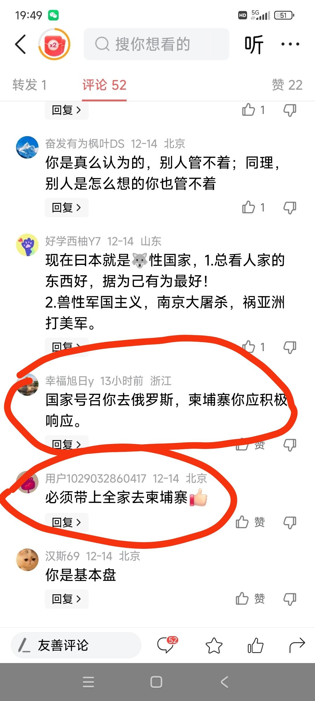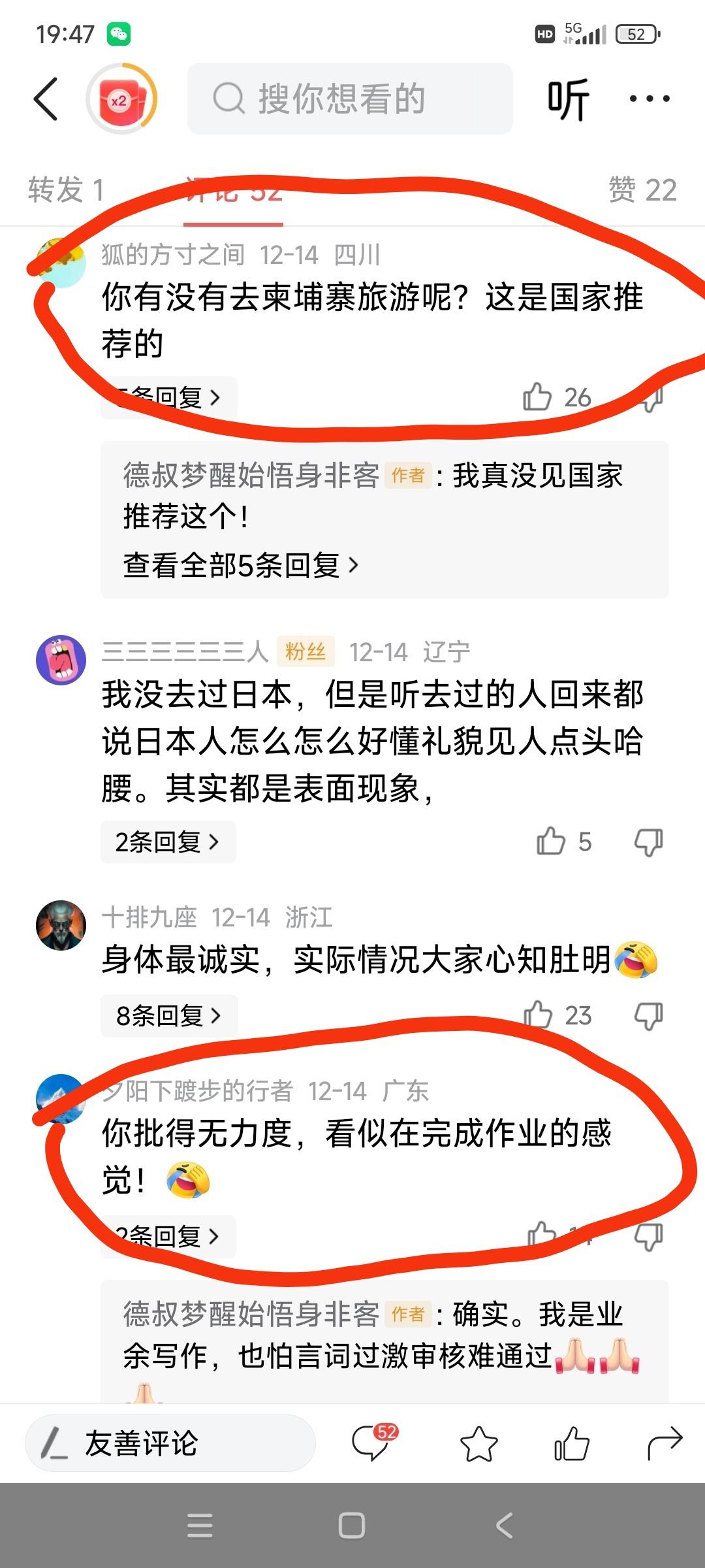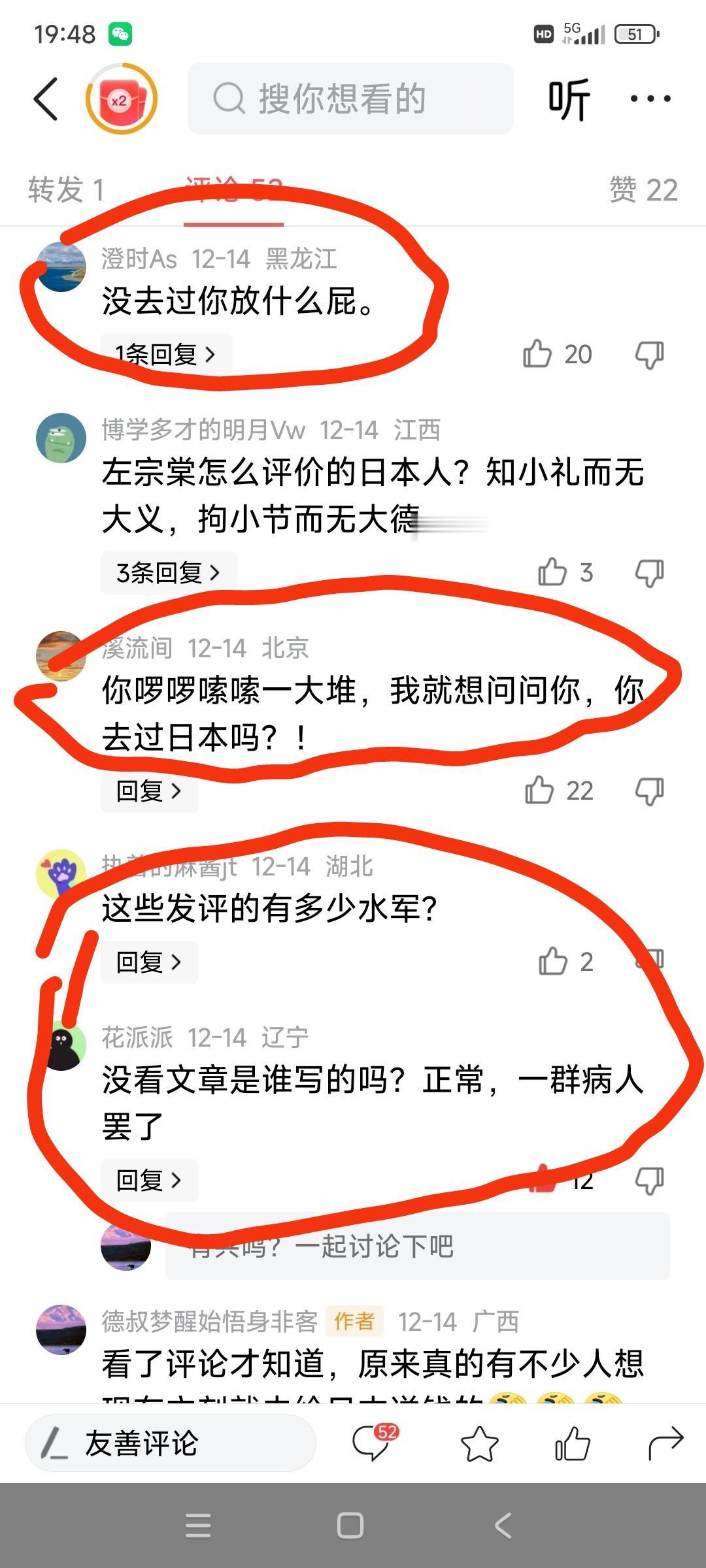 前天发了个微头条,阅读量才1千多。让我吃惊的是,几十条评论中,有不少是冷嘲热讽挖苦讽刺,甚至是兴师问罪的! 因为看到一篇文章,通篇就是说日本怎么怎么的好,又是体验感,又是性价比,还说日本人都很友善,那里很安全。其实就是鼓动国人去日本旅游,而且是立刻马上就去那种! 我一看就觉得,在目前的氛围下发这样的文章不合时宜。国家不是呼吁人们不要去日本吗,这是在跟国家唱反调啊!我就写了个微头条评论了一下,没想到这么小众的文章竟然引来围攻,难道真的戳到了某些人的痛点? 体验感和性价比我就不说了,毕竟我没去过日本。可日本真的安全吗?和平年代、正常时期应该还不错,可现在是中日关系紧张的非常时期,你敢保证日本右翼分子或街头小混混也对中国人很友善? 日本是地震高发地区,本就存在安全隐患。几天前就连续发生两次高震级地震,也有网友分享了惊魂时刻。文章中对此却只字不提,只是一口咬定日本很安全,到底是蠢还是坏? 再说了,国家呼吁国人不去日本,除了安全问题,也有打击日本旅游业的考量!说白了就是不希望日本在中国游客身上赚大钱来提振日本经济!你却鼓动国人去给日本送钱,这不是公然跟国家唱反调吗? 下面我对部分评论作个简单的回应。 点赞最多的评论是问我“你去过日本吗?”更有人直接说“没去过你放什么屁?” 怎么的,没去过日本就不能发表评论吗?我没去过,不等于身边周围都没有人去过!现在已是足不出户就能知天下事的时代,在网上分享日本旅游经历的多了去了,你敢说这些都是假的吗? 你们能跑到我的文章下面来评论,我为什么就不能评论别人的文章?你们想玩双标吗? 有人问我为什么不去俄罗斯或柬埔寨旅游,还说是国家推荐的。我认为到目前为止,在国家层面呼吁国人到某个国家去旅游的事,还从来没有发生过! 不去日本,就非得去俄罗斯或柬埔寨吗,这是什么逻辑??去新加坡或马来西亚,去巴厘岛或马尔代夫,不行吗?或者留在国内,观赏祖国的大好河山,了解各地的风土人情,品尝地方特色美食,不行吗?在国内,我还有很多地方没去过呢! 再说了,国家要求我们的,比如公而忘私、助人为乐、乐善好施、见义勇为等等,我们未必能够做得到,只能尽力而为。但国家要求不做的,我们尽量不去做,不是应该的吗? 我说我听国家的,竟然有人质问:张口闭口“国家”,你嘴里的国家指的是什么?这条评论竟然有超过20人点赞!我回复他,说我的国家是中国,问他是哪国的,他不再出声!但有人跳出来,要求我“先把国家和政权的概念搞清楚再来吧”。这是几个意思? 还有网友批评我,“你批得无力度,看似在完成作业的感觉!”我虚心接受批评并深表歉意! 作为业余创作者,我经常是有感而发,就事论事,没有什么高深的理论,也少有独到的见解。我写的基本上是微头条,不善于条分缕析,没有长篇巨制。辜负了网友的期望,惭愧惭愧! 我看了一下那些评论的IP地址,除了一个日本的,其他都是国内的。为我这么一个小作者的一篇阅读量1千多的小文章,真是辛苦你们了!