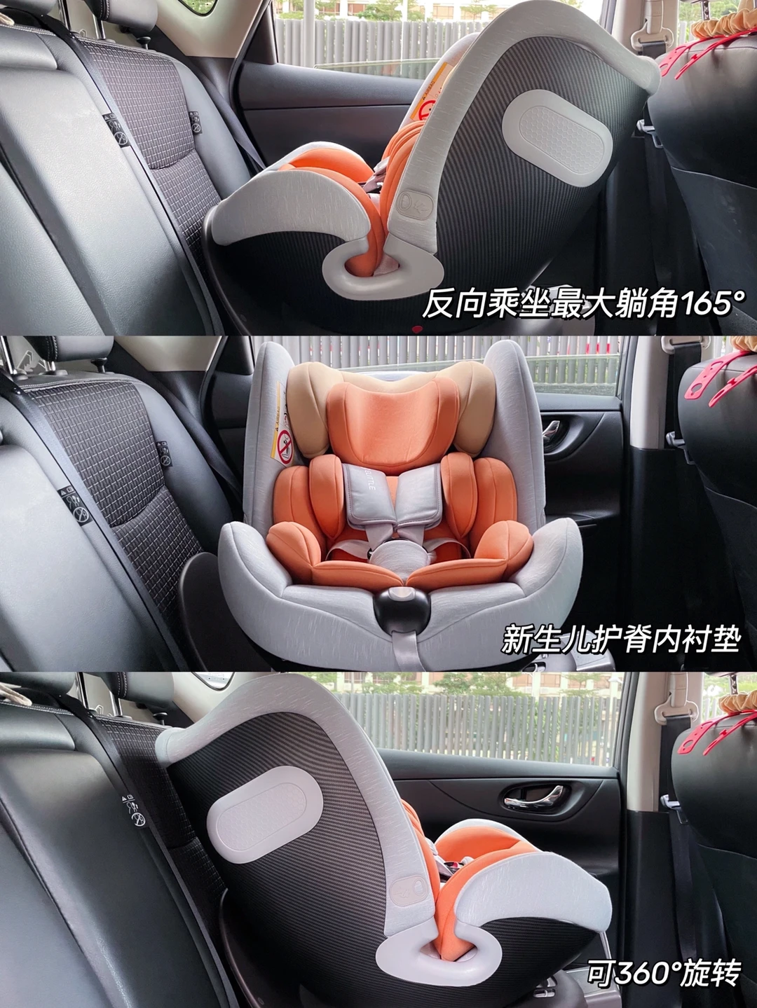 座椅可360度旋转,单手操作就行,上下车时,旋转到车门方向再放宝宝进去,然后扣上五点式的安全带,一气呵成!中途要是宝宝👶🏻误开,它还会响,这个真的很人性化!