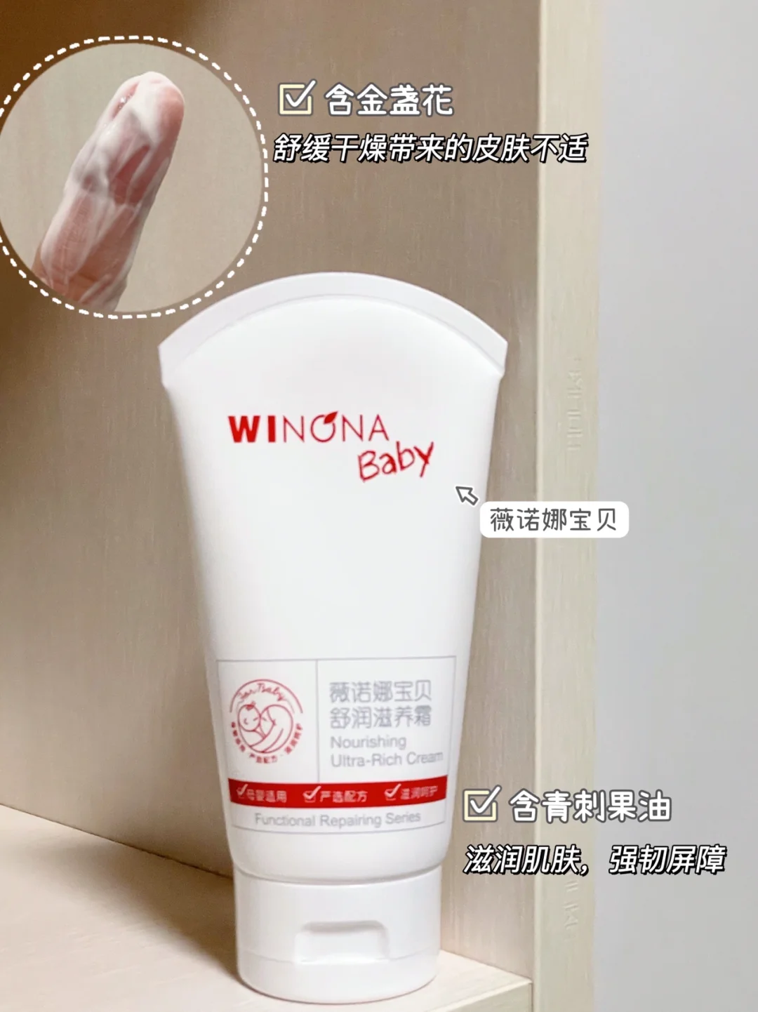 宝宝面霜不用太复杂,成分简单温和就好,可以去👉美修app查一下成分。如果新手妈妈不知道选哪个面霜的话,可以试试👉薇诺娜宝贝舒润霜,这个牌子是专门帮助宝宝呵护敏感脆弱肌的。