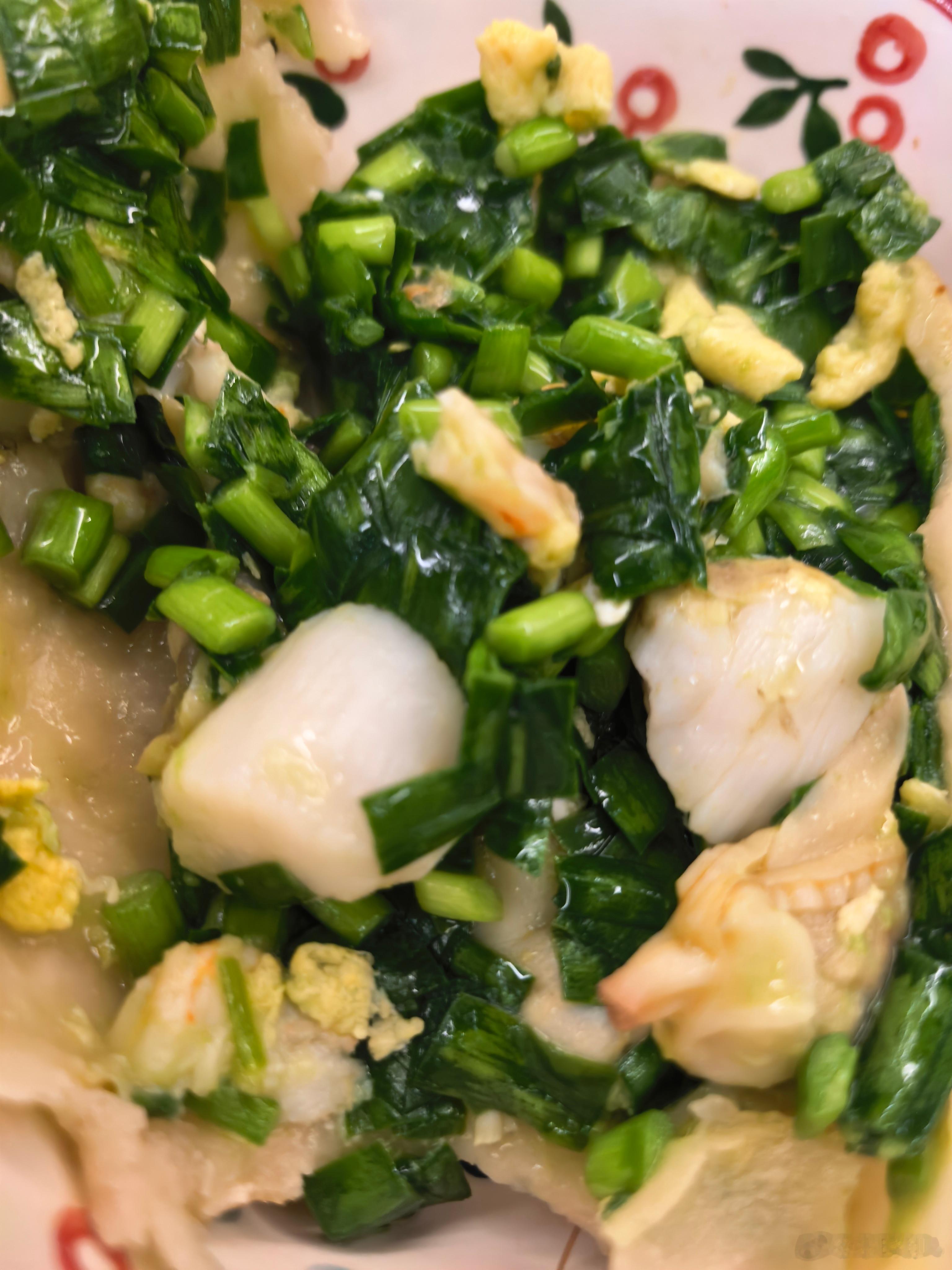 在大连,韭菜盒子可以加各种贝类小海鲜,但扇贝丁是必须有的