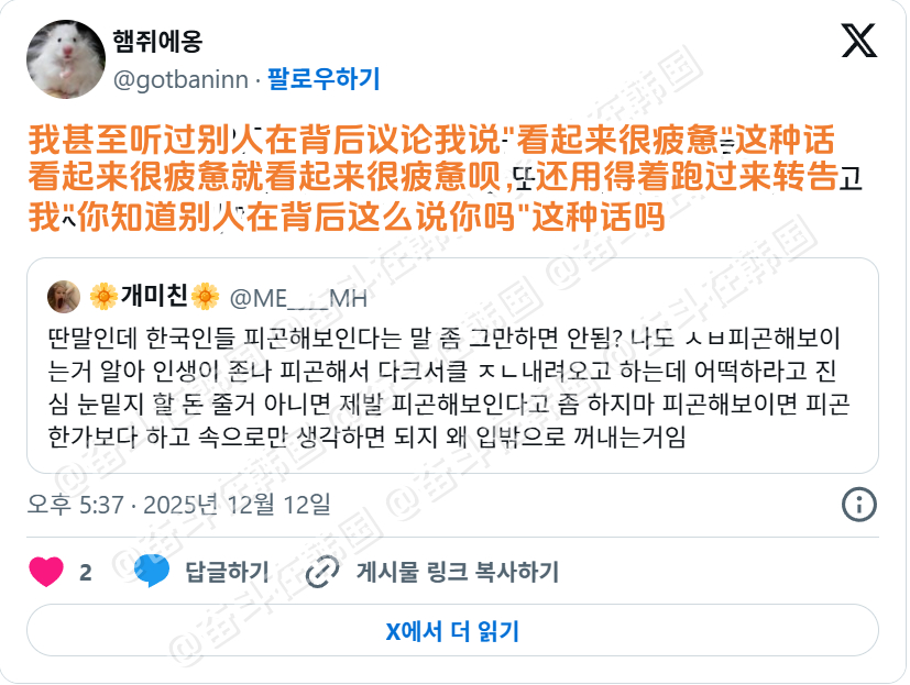 韩国人能不能别再说“你最近看起来好疲惫”这种话了 海外新鲜事 热点现场