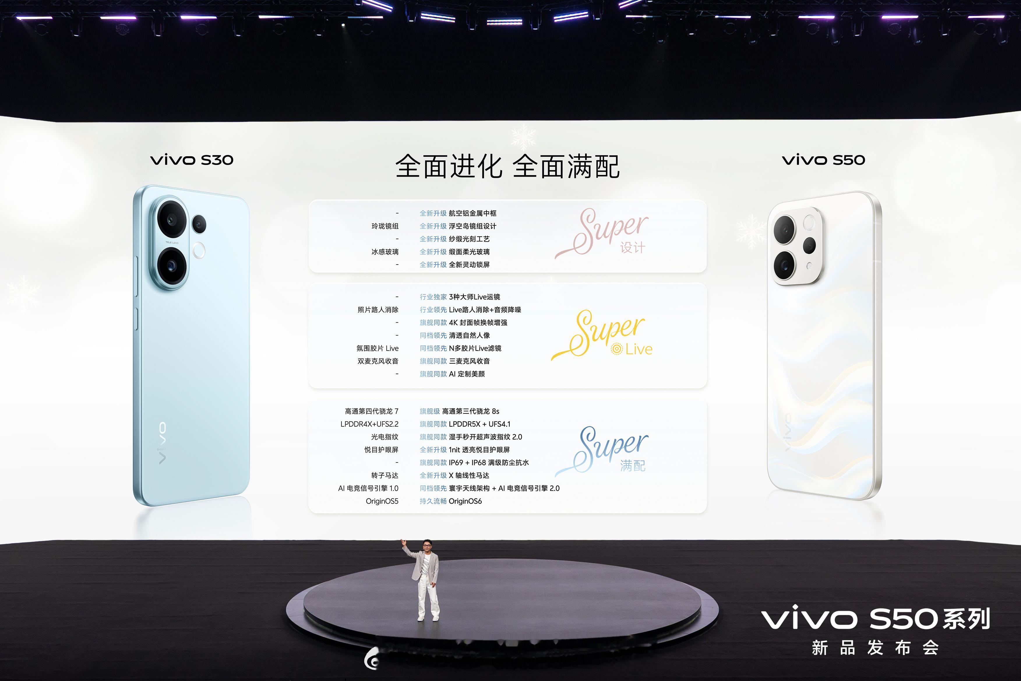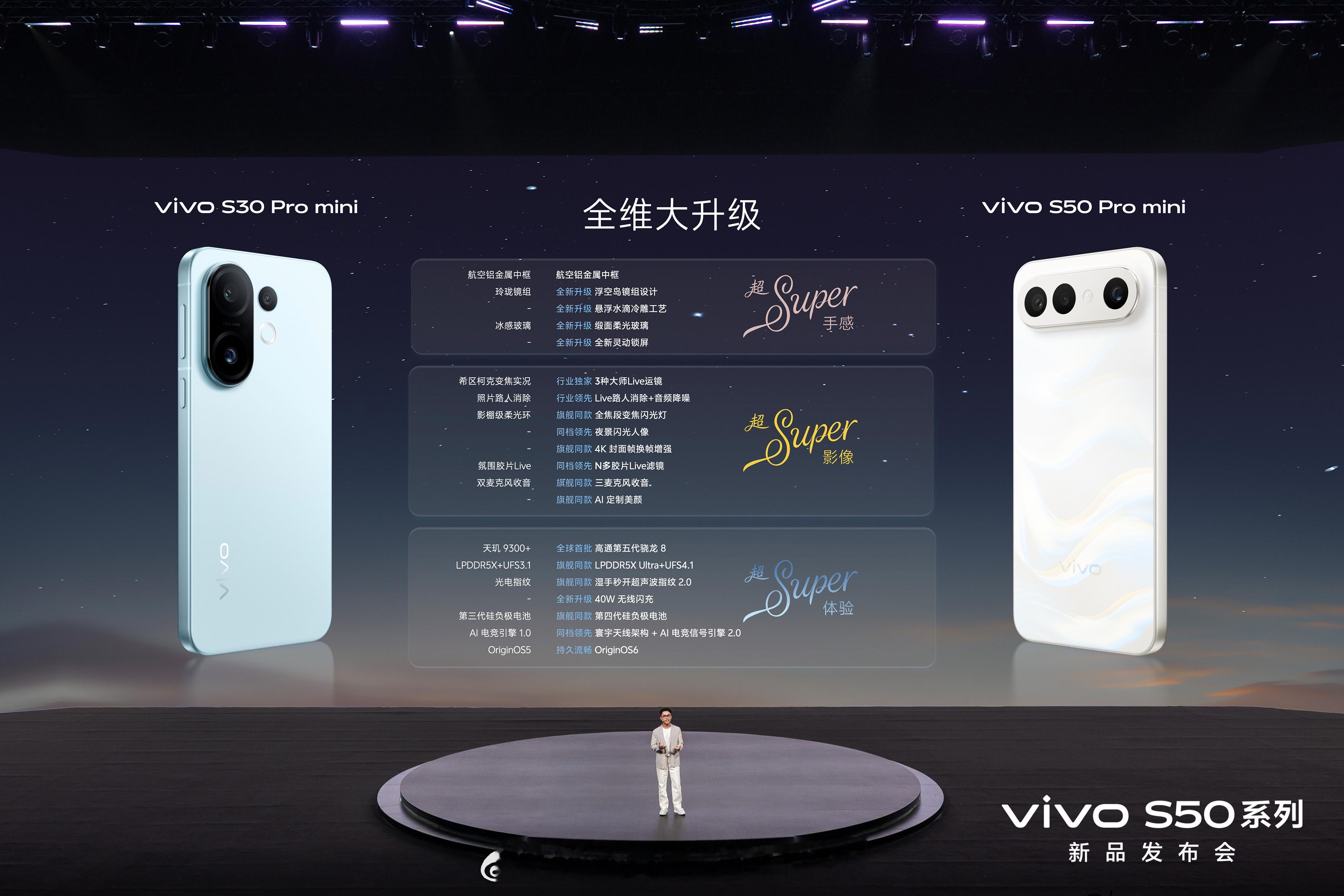vivoS50vivoS50Prominivivo S50系列正式发布:标准版重塑“满配”体验,Pro mini版定义小屏旗舰新选择2025年12月15日,vivo正式发布了全新的S50系列手机,包含vivo S50与vivo S50 Pro mini两款产品,致力于在设计、影像与性能上进行全面升级该系列现已开启预售,并将于12月19日正式开售。标准版vivo S50:主打“满配实力”该机型搭载第三代骁龙8s移动平台,配备一块6.59英寸屏幕,影像方面,其后置相机搭载了包括5000万像素索尼IMX882大底潜望长焦在内的全焦段镜头组合。小屏旗舰vivo S50 Pro mini:小巧机身融入顶级配置该机型是首款搭载第五代骁龙8移动平台的小尺寸旗舰,采用6.31英寸屏幕,其影像系统配备了VCS超感光仿生大底主摄,并同样搭载IMX882潜望长焦镜头。系列共同亮点外观上,新系列采用了航空铝金属中框与全新的纱缎光刻工艺背板,提供告白、灵感紫等多款配色,全系引入了“清透自然人像”算法,旨在实现更真实、保留细节的美颜效果。其“长焦Live神器”的定位,也带来了如高光慢动作、变焦运镜等创新的动态影像玩法。此次S50系列的发布,显示了vivo S系列在保持美学与影像基因的同时,正通过差异化的性能与尺寸配置,满足更广泛年轻用户的多元化需求。 北京