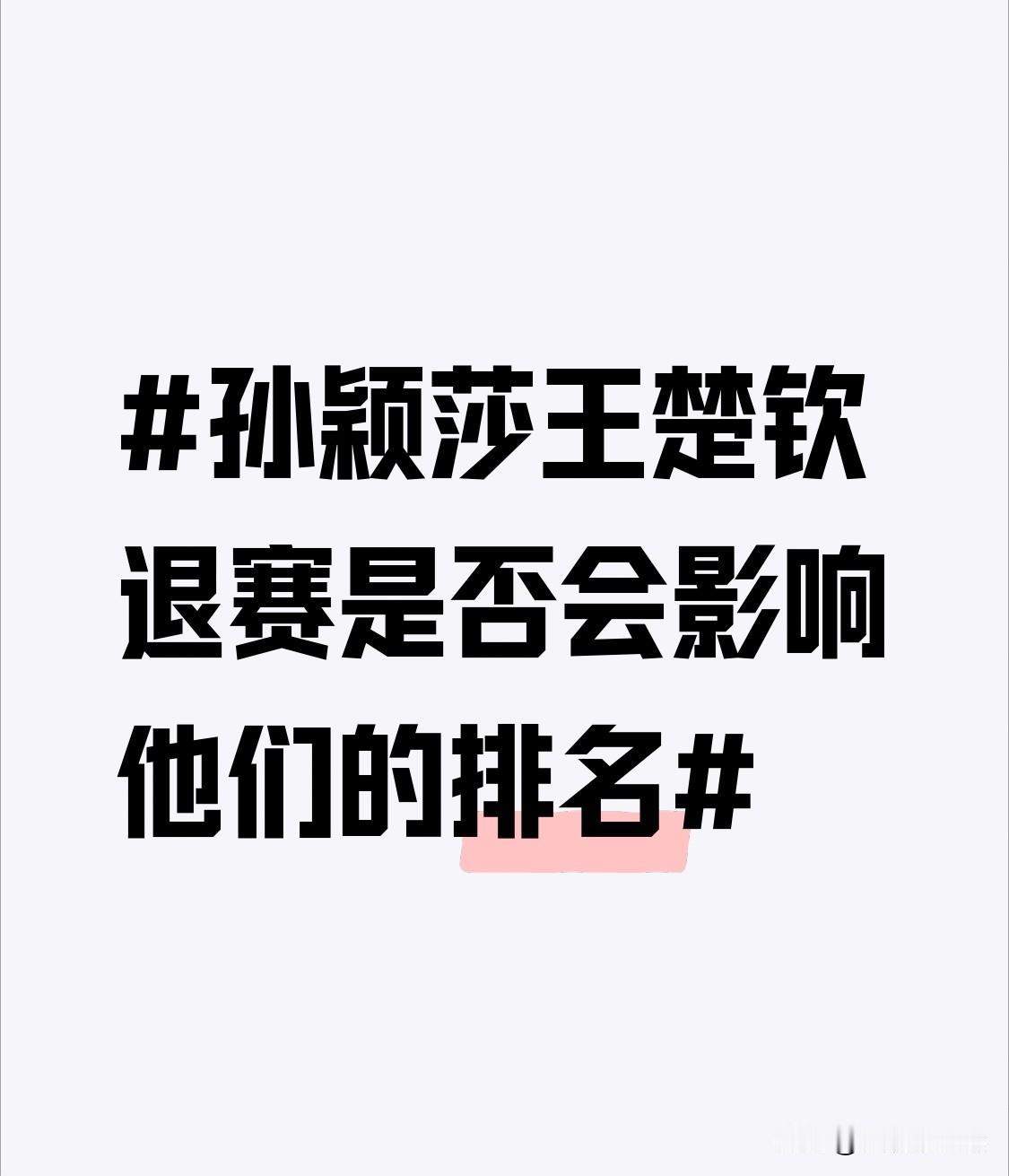 孙颖莎和王楚钦退赛会不会影响排名,得看具体赛事积分规则。目前两人领跑国际乒联最新排名,王楚钦男单世界第一,孙颖莎女单世界第一。 孙颖莎因胳膊肌肉反应退出多项赛事,王楚钦也因身体原因退出全国乒乓球锦标赛男团赛事和WTT香港总决赛。若这些赛事有较高积分,退赛可能会让他们少拿积分,排名或许受影响。但体育赛事充满变数,其他选手表现也会改变排名格局。希望他们好好养伤,早日回归赛场。