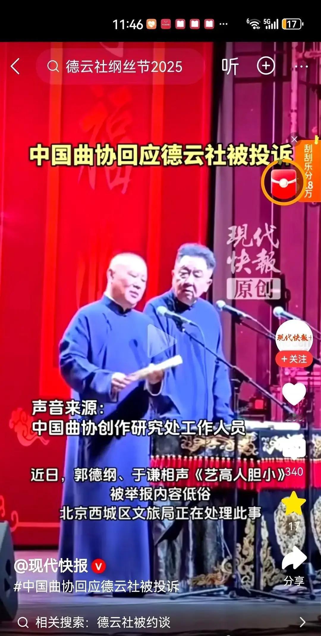 文旅局查了德云社,没查出毛病,一句“内容合法”就把举报打发了。曲协那边还在打官腔,说“要自律”,听着像劝架又像撇清。 郭德纲倒干脆,天津专场直接怼“台下都是俗人”,票照样卖光。 说白了,这不是低俗高雅之争,是两条赛道打架。体制内晚会相声和德云社商演,观众重合不到三成,各吃各的饭。 监管也学乖了,红线划清,剩下交给市场。观众用钱投票,比开会管用。