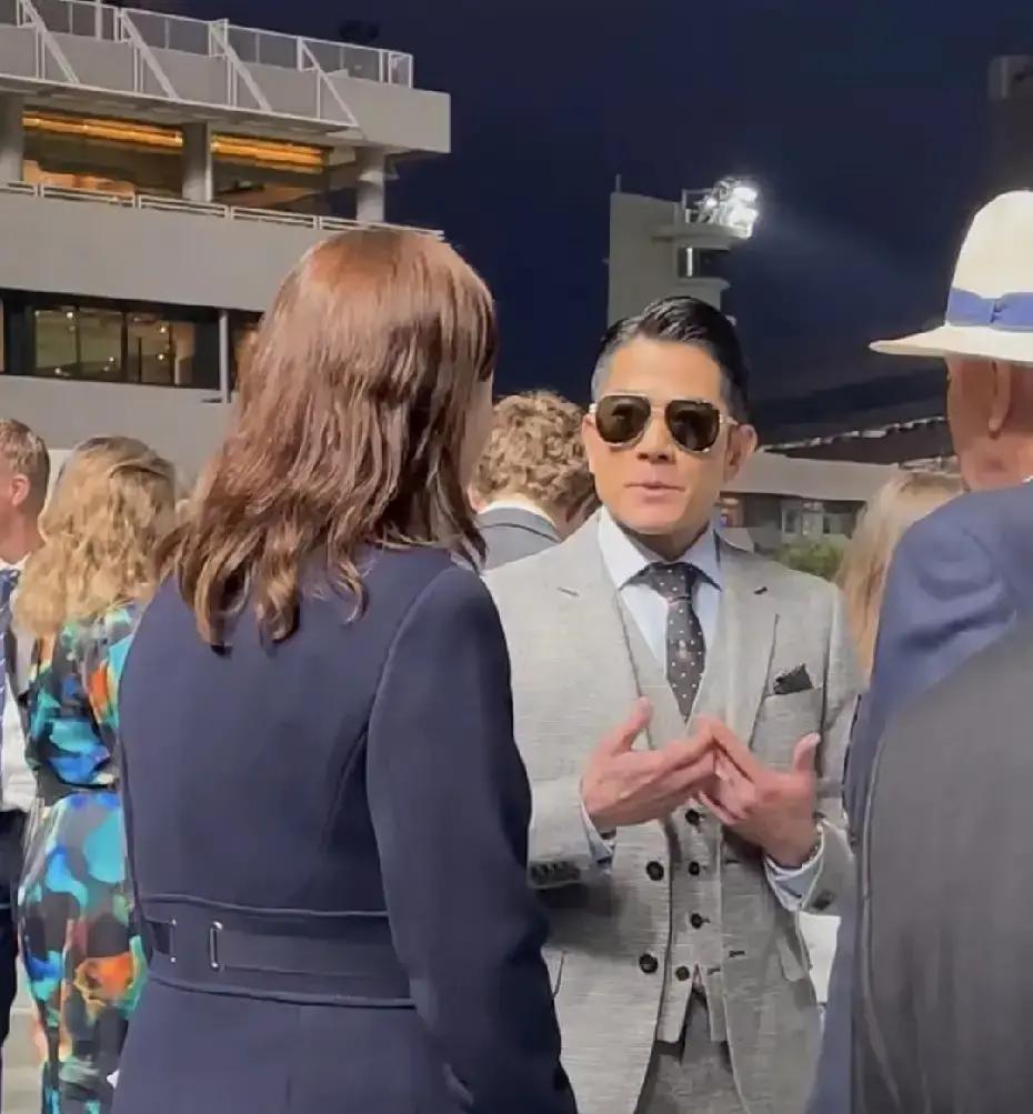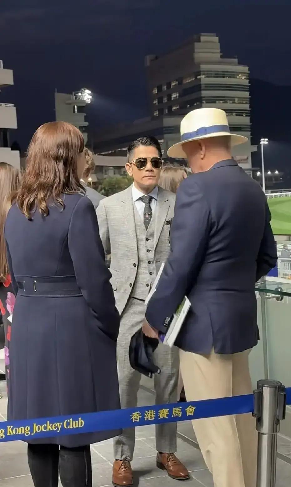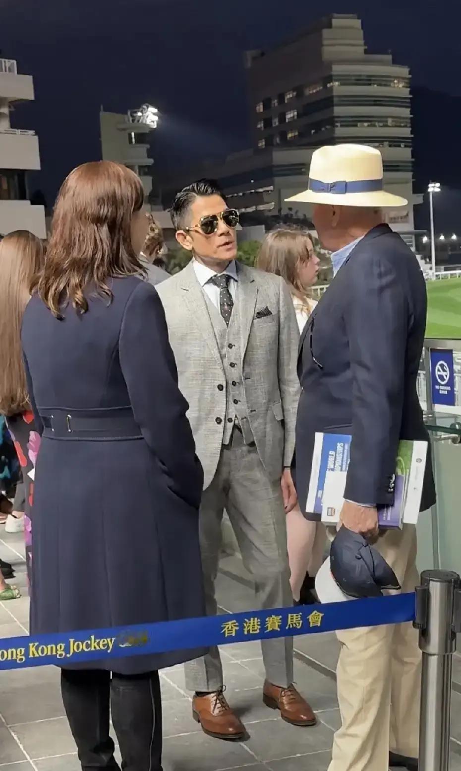 郭富城最近两件事,够热闹。 5月28日,他穿灰西装现身沙田马场,英文溜得飞起