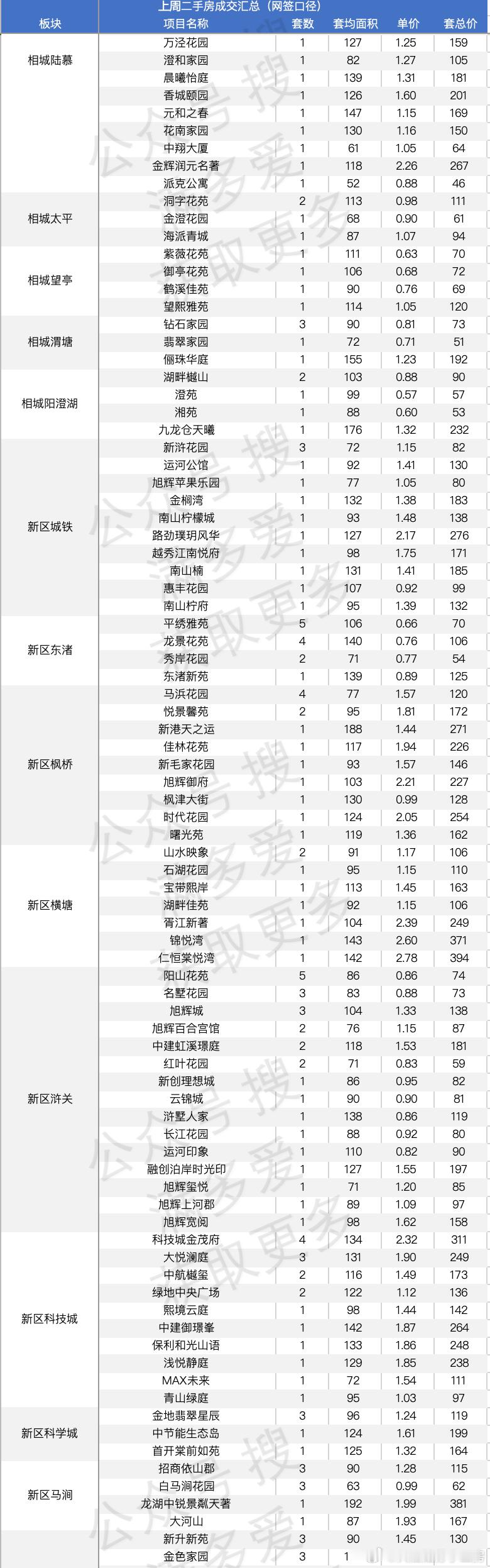 12月第二周全市二手成交一览仅供应参考,然后不要问我具体房号啥的泄露隐私,非法的事莫开尊口涵盖所有二手平台的成交总量注意注意,网签不是认购,认购转到网签是有时间差的上周看,成交第一的都是大小区新湖明珠城8套九龙仓时代上城8套三元新村6套太阳湖大花园6套东湖大郡6套莲花帝国6套彩香新村5套大家自己看吧