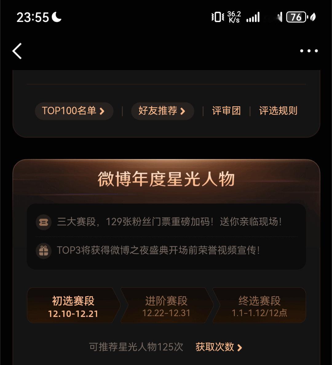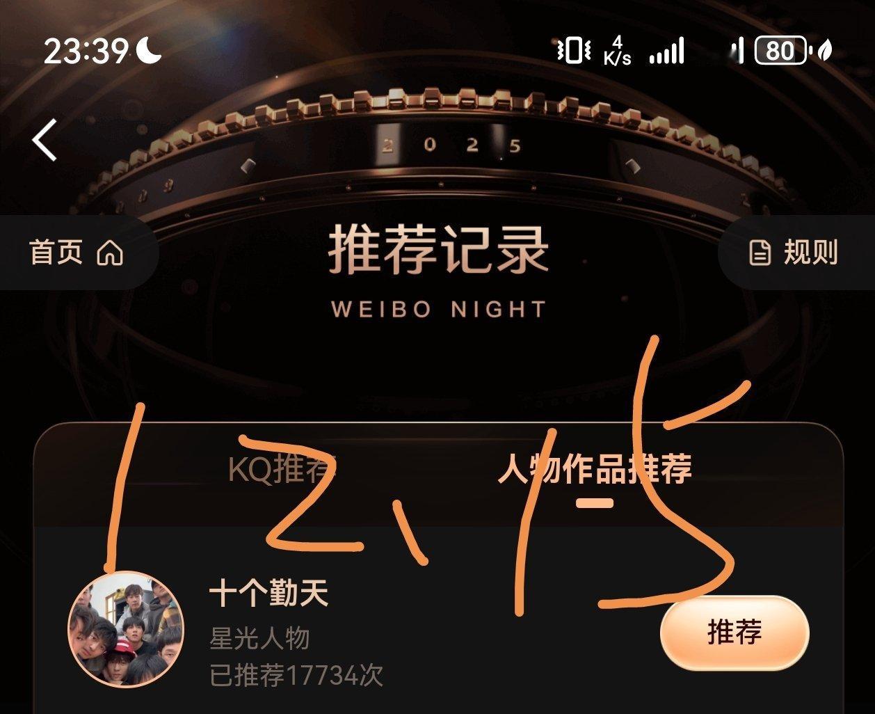 十个勤天种地吧微博年度星光人物 大家助力也不要太极限了(太晚了)万一没投到,浪费了咋办。11:39分已经投完一波,11:56分一看,又有125票了。