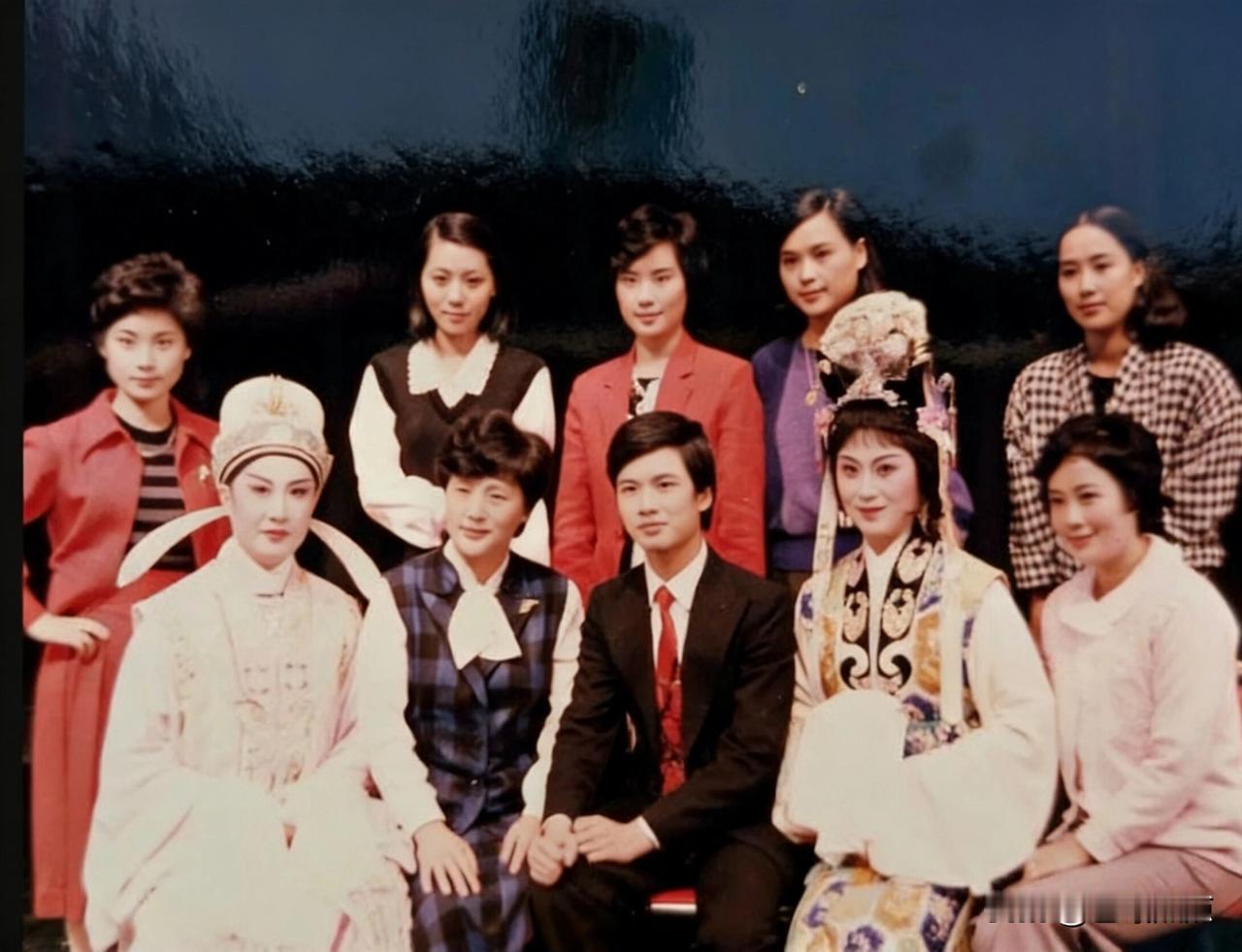越剧名家们年轻时代的合影。 那时的他们青春洋溢,妥妥的“小鲜花”、“小鲜肉”。处在C位、着装一红一黑的是“徐派”小生钱丽亚,“尹派”越剧王子赵志刚。还有谁呢?