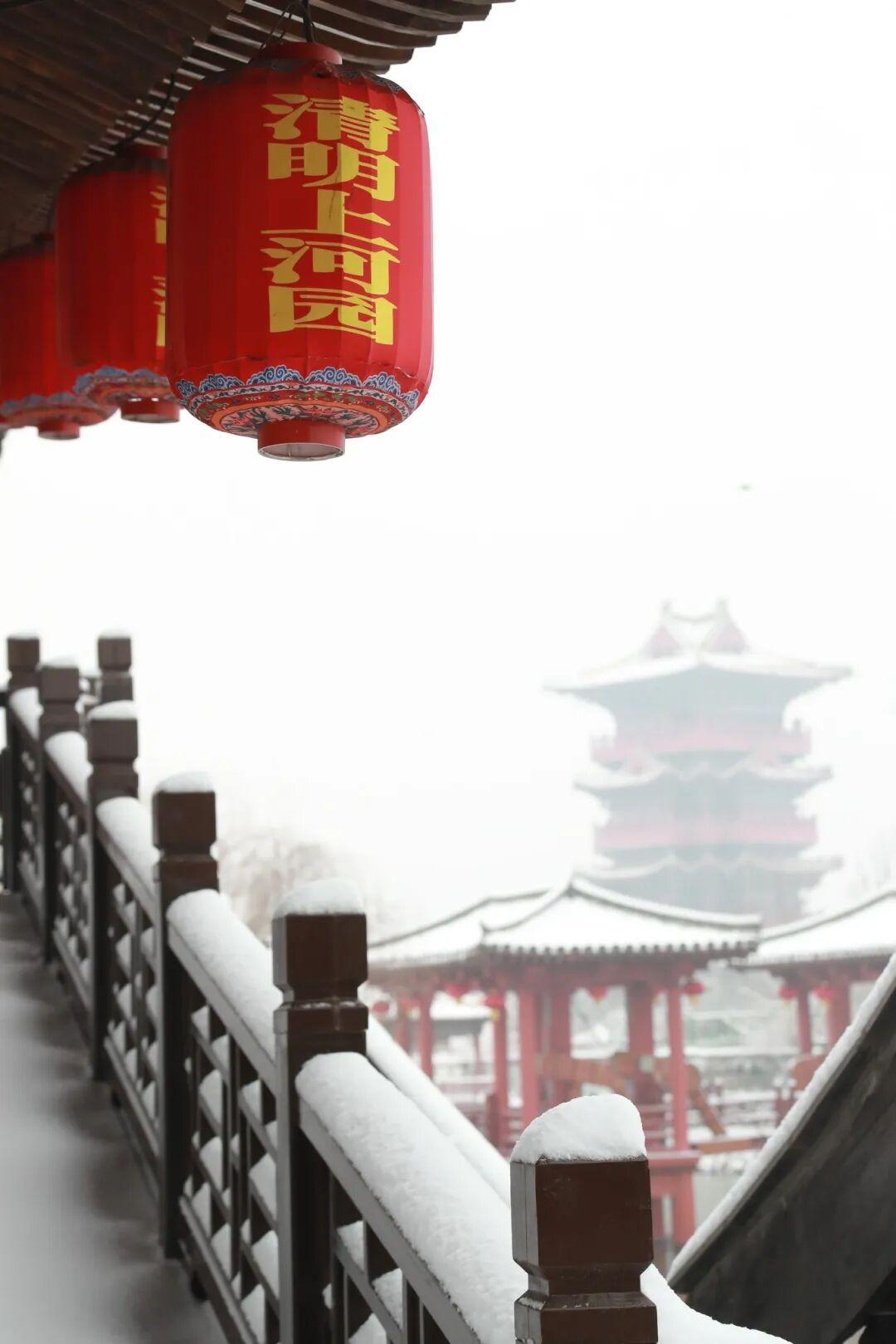 2025年冬,雪一下,开封真就变回了汴梁!清明上河园成了雪景版《清明上河图》,完成了张择端未写完的留白。洁白雪花落满宋式屋檐,虹桥在雪色衬托下更耀眼,灯笼被白雪包裹,十千脚店的酒旗在雪中翻卷,穿宋制襦裙的姑娘撑伞走过,捏面人的手艺人成了行走的画卷,北宋的冬天有了具体模样。 而且,雪落清园还是一场跨越时空的狂欢。《大宋百戏·暖冬狂欢季》演出热闹,经典演出雪中不停,让人感觉成了北宋汴京人。这样的开封,谁能不爱?