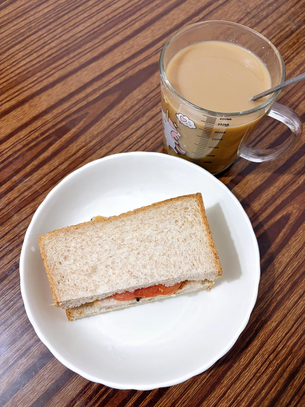 还债第一天的体重:108.6斤⬇️0.7斤 今日减脂早餐:全面面包+半块鸡排+番