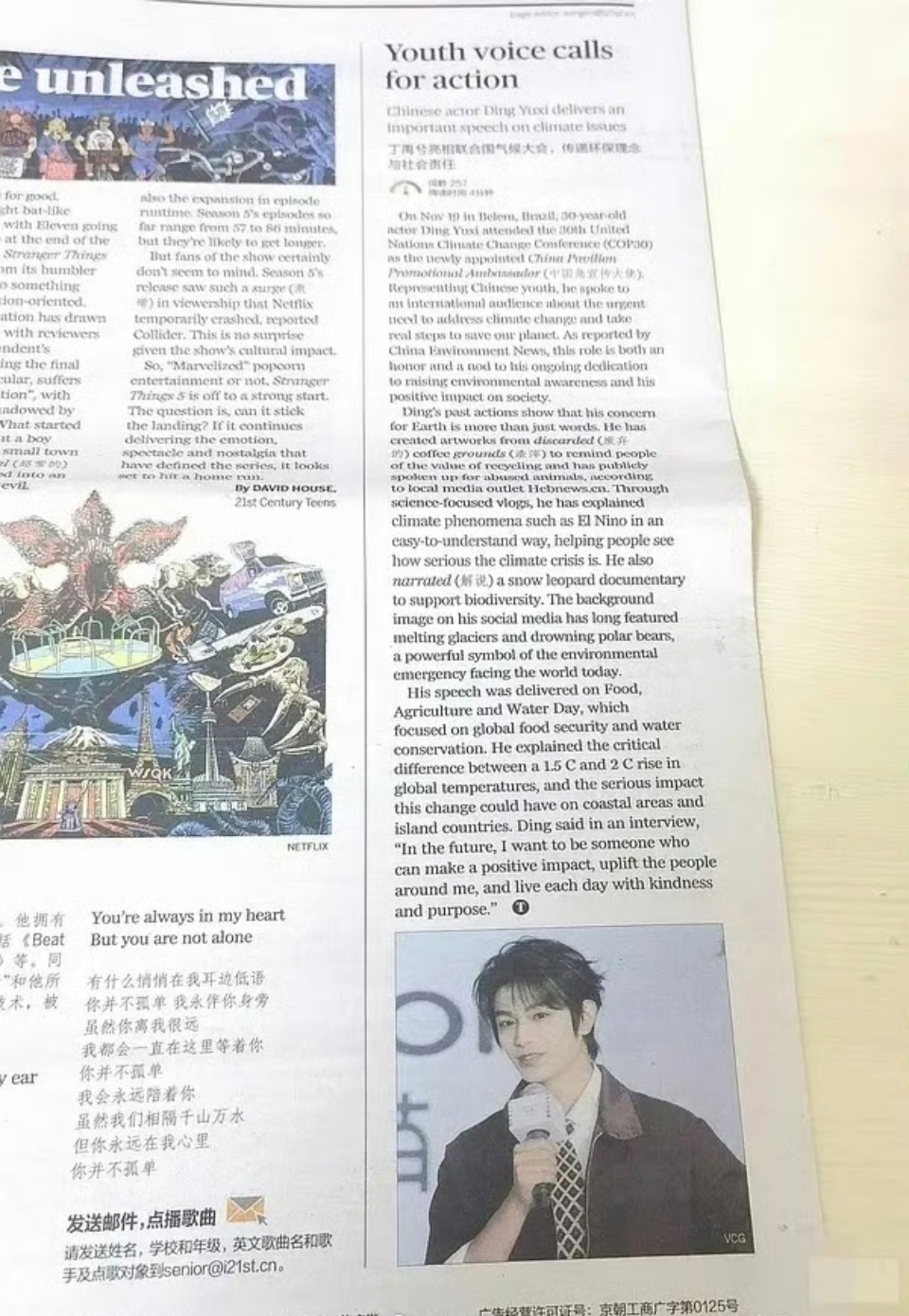 丁禹兮荣登中国日报学生英语报在英语报上看见丁禹兮了 谁懂啊 看英语报纸的时候突然看到丁禹兮高兴的事情 丁禹兮