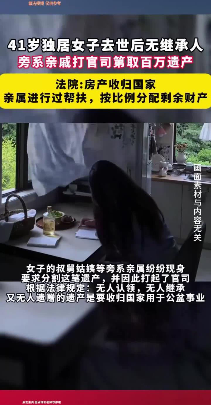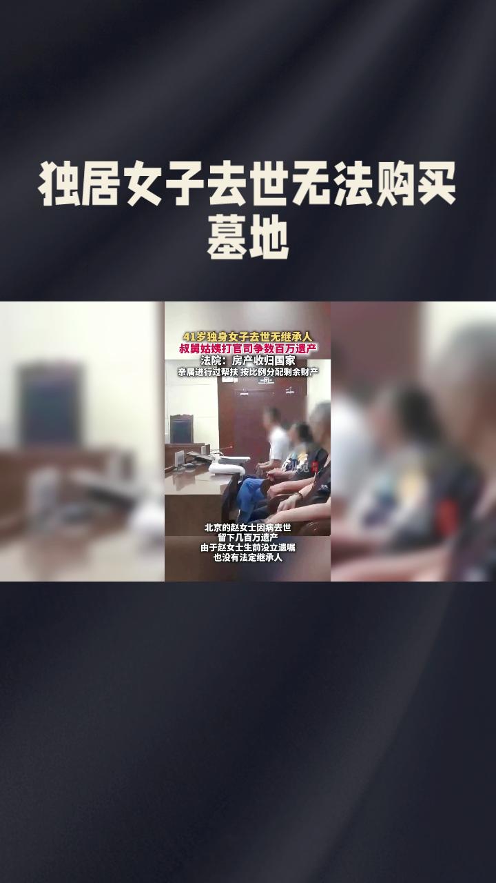 独居女子去世,遗产究竟该用于何处?无法购买墓地引发热议。 随着社会老龄化的加剧,越来越多的独居老人成为社会关注的焦点。近日,一起独居女子离世引发的遗产争议再次引起了广泛关注。据北京市昌平区人民法院报道,41岁的赵女士因病去世,留下了数百万元的遗产,其中包括一套房产和银行存款。然而,赵女士生前未立遗嘱,也没有法定继承人。她的叔姑舅姨们因此对簿公堂,要求分割遗产。法院最终判决赵女士名下的房产归国家所有,用于公益事业,而其他遗产则根据各当事人对赵女士的帮扶情况分配。这一判决引发了关于遗产用途和分配原则的广泛讨论。面对此类情况,社会各界呼吁建立更加完善的遗产管理制度,确保逝者的遗产得到妥善处置,同时也考虑到对家庭成员和其他需要帮助者的合理补偿。 遗产归谁 临终财产继承 离世遗产