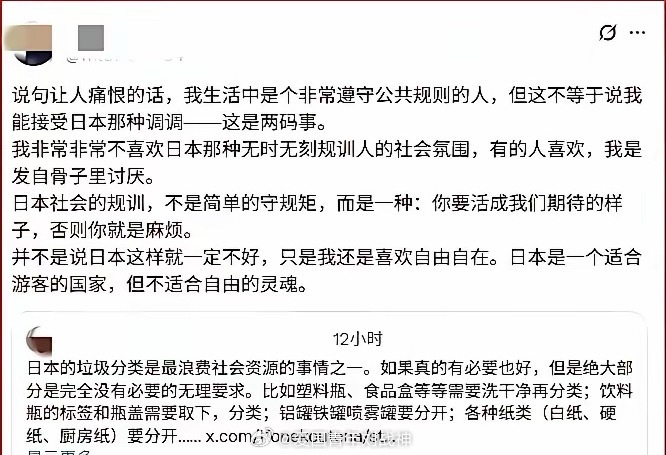 日本华人博主称日本社会那种无时不刻规训人的社会氛围令人非常讨厌,非常压抑海外新鲜事热点现场