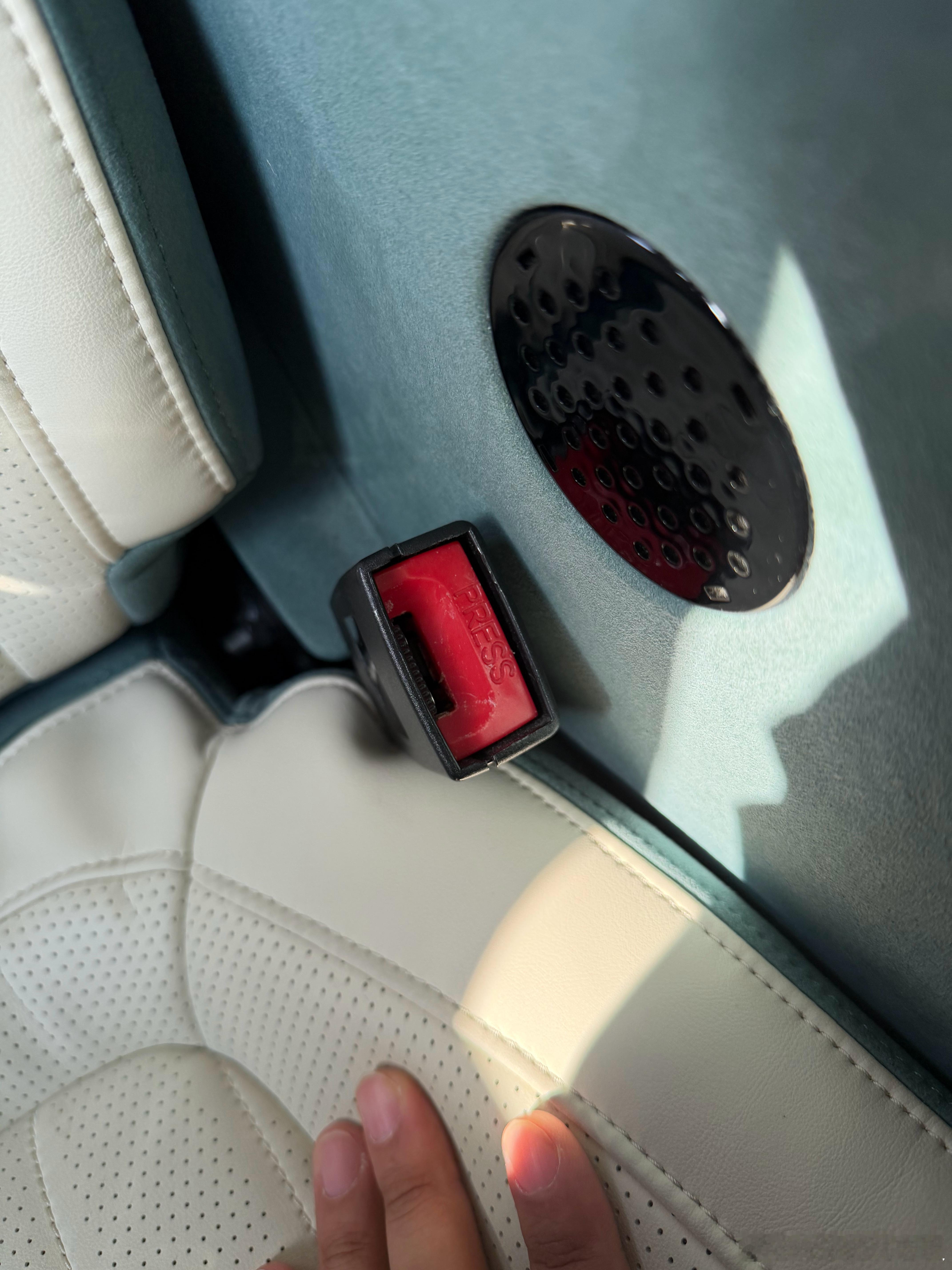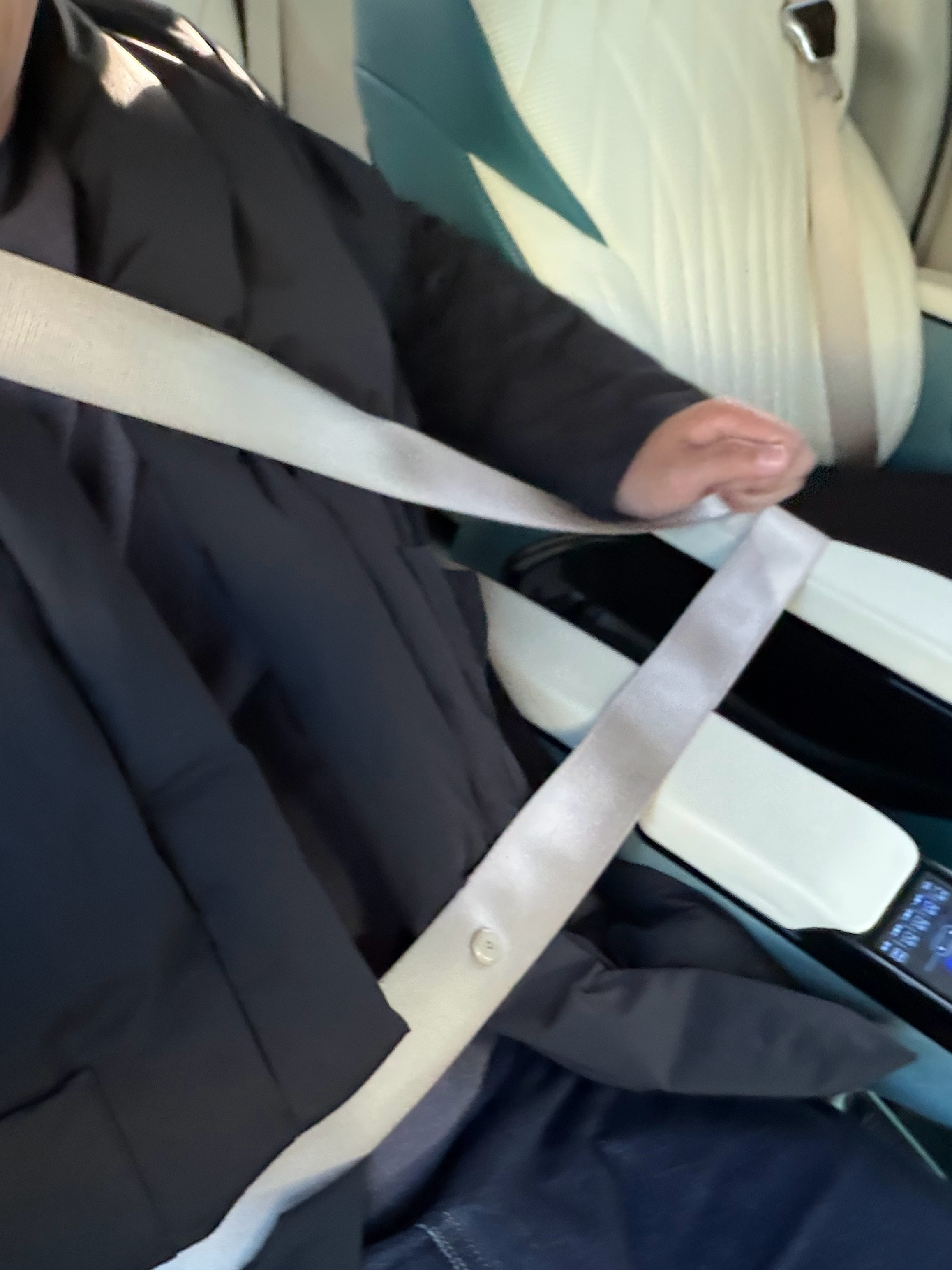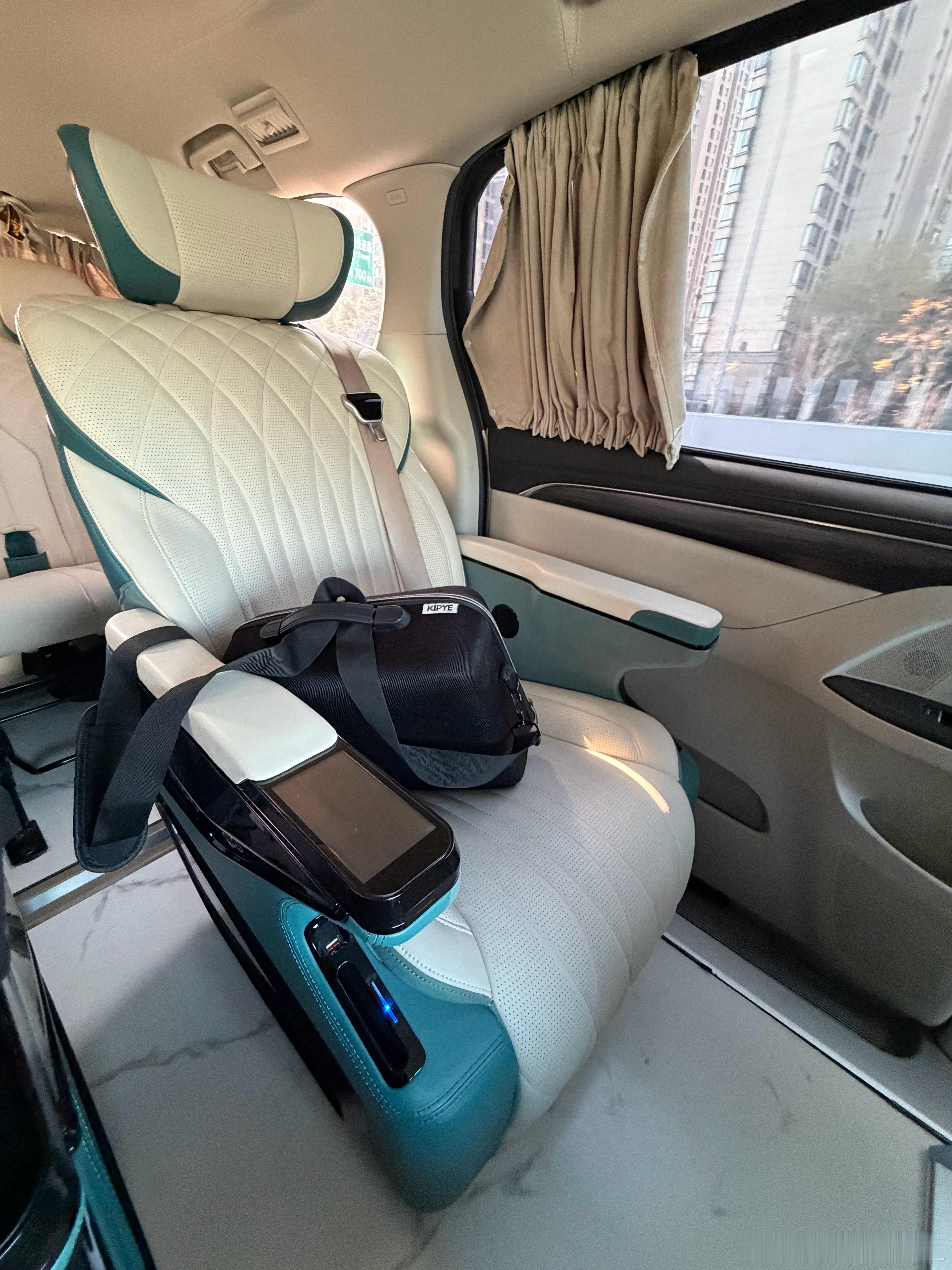 改装的Gl8航空座椅 居然安全带卡扣坏了 而且要跑100公里高速 惜命的我选择把安全带系到另外一个上 说实话除了有点勒其余的都挺好跟姚老板混一天吃9顿
