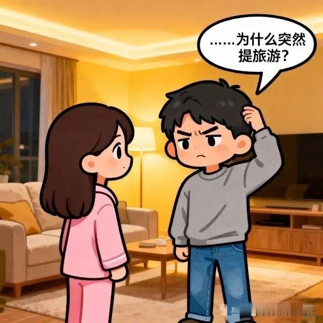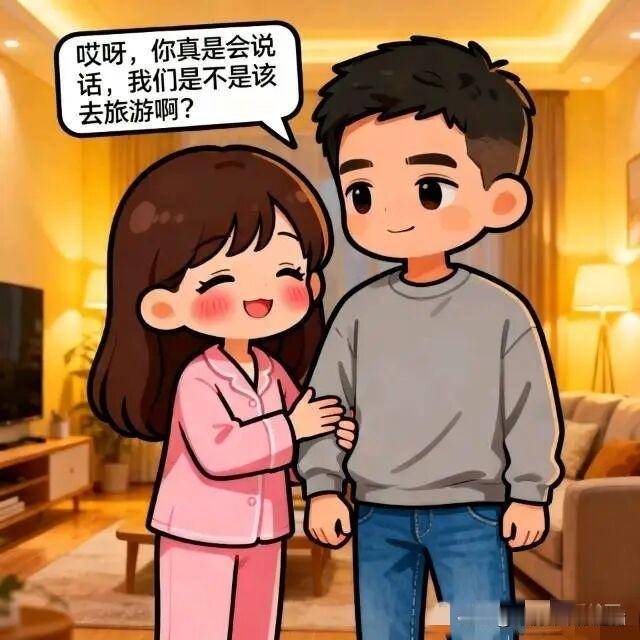趣味漫画:老公:媳妇,你知道吗?你的眼睛比星星还要闪亮!媳妇:哎呀,你真是会说话,我们是不是该去旅游啊?老公:为什么突然提旅游?