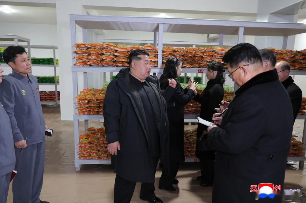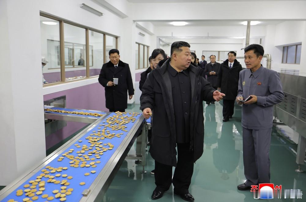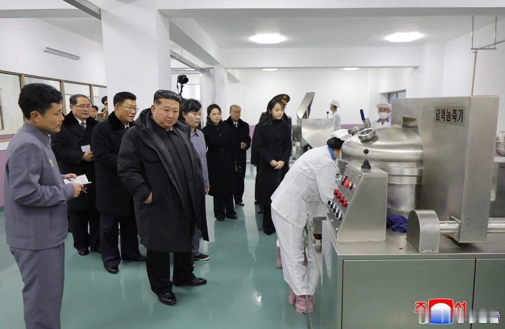 金正恩出席江东郡地方工业工厂和综合服务中心竣工典礼女儿金主爱陪同参观了蛋糕生产线,将军尝了块小饼干,夫人在和女儿聊天完朝鲜朝鲜