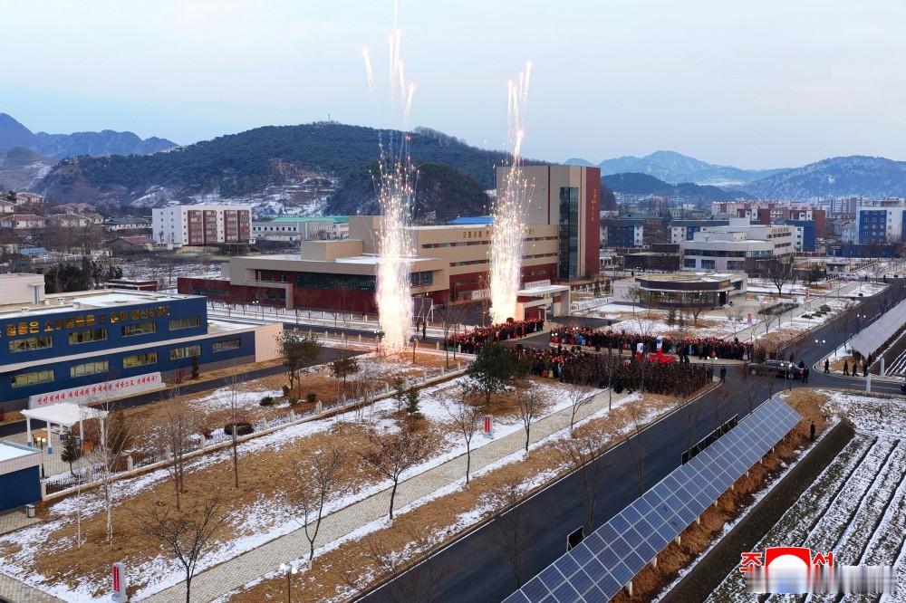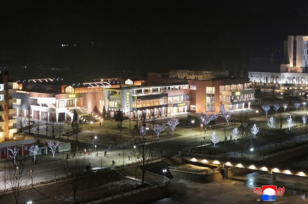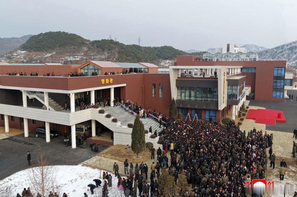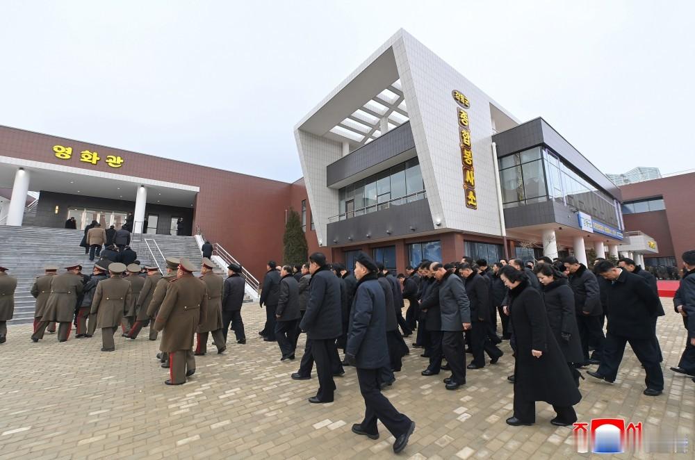 金正恩出席江东郡地方工业工厂和综合服务中心竣工典礼女儿金主爱陪同反映民生这块,有剧院,服装店,好像没有自动扶梯朝鲜朝鲜