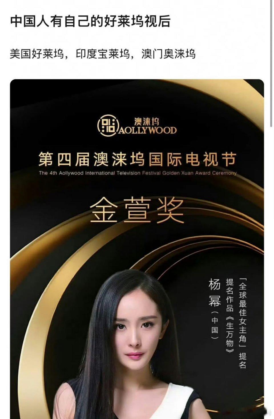 我的天哪!!杨幂提名好莱坞前哨奖奥涞坞了,比飞天金鹰白玉兰还牛的存在,幂姐棒棒哒👍🐮
