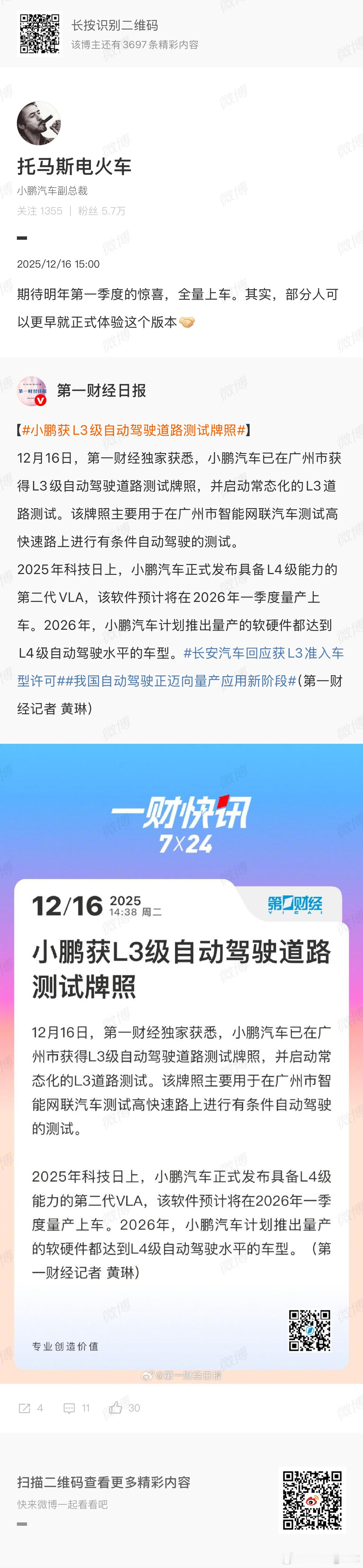 小鹏的L3节奏这么快吗明年一季度,就能全量上车? 小鹏获l3级自动驾驶道路测试牌照