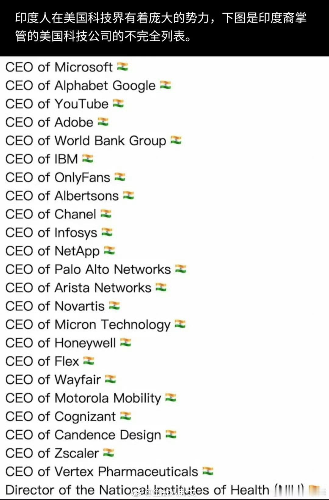 印度流水线培养欧美CEO在全球排名前300的公司里,有超过6成都选用了印度裔的高管。这些公司包括但不限于谷歌、微软、Adobe、百事、德勤、星巴克、诺华、麦肯锡、香奈儿......